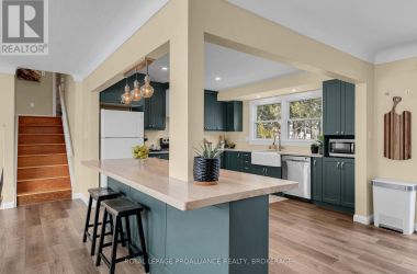 Discover the perfect blend of classic charm and modern luxury in this charming 4 bedroom, 2 bathroom home located in the sought-after Reddendale neighbourhood. Just steps from Lake Ontario, Crerar Park and RG Sinclair Public School, this property offers an idyllic setting for family living. Step inside to a fresh and inviting side split that flows effortlessly from the main level with front office (which could easily be transformed into another bedroom or den), to a back bedroom and four piece bathroom. Heading up to the next floor you'll find the heart of the home; a spacious living room, anchored by a cozy gas fireplace and large picture window, a modern open concept renovated kitchen with quartz counter tops (2023) with centre island and dining space. Upstairs, you'll find the primary suite with triple sliding-door closets and ample natural light, along with the third and fourth bedrooms and second four piece bathroom. The lower level adds even more living space with a fully finished rec room, laundry room, and ample storage. The true showstopper, however, is the amazing outdoor space. Walk out from either the main floor mudroom or upper dining room to a sizable deck with built-in seating, overlooking a lush, private, and oversized backyard. Whether you are hosting summer BBQs or enjoying a quiet morning coffee, this backyard is a private oasis. Don't miss your chance to live in one of Kingston's most desirable communities! (id:50836)