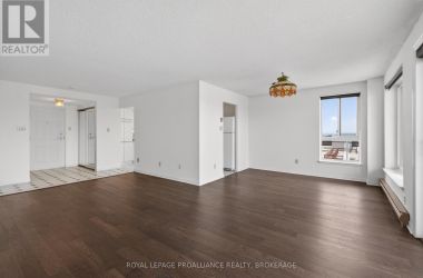Welcome to 257 Bath Rd, Unit 1006! This bright and spacious 10th-floor condo offers comfortable, low-maintenance living with sweeping views of Kingston. The unit features two bedrooms, including a primary suite with a three-piece ensuite featuring a stand-up shower and two double closets. A four-piece main bathroom and a large in-unit storage room provide extra convenience.The kitchen is equipped with a fridge, stove, dishwasher, and pantry, offering practical space with classic cabinetry and durable vinyl flooring. The tiled hallway leads to a generous dining area and a bright living room with laminate flooring, opening to a private wrap-around balcony perfect for relaxing and enjoying the view. Updated windows and efficient electric baseboard heating add to your comfort.Residents of the building enjoy fantastic amenities, including two swimming pools (one indoor and one on the roof-top), sauna, exercise room, library, meeting/party rooms and a workshop. Move-in ready with plenty of potential to make it your own, this condo combines space, comfort, and convenience in a great central location. (id:50836)