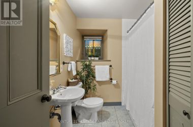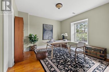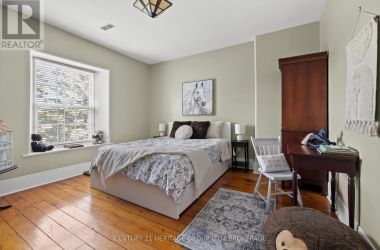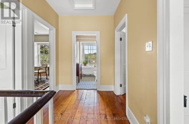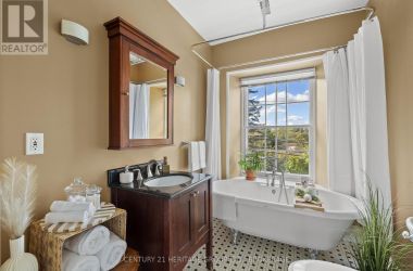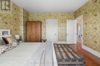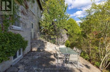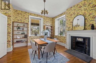 The once-formal gardens that surround this intensely pretty (and nicely updated) limestone and sandstone home just east of downtown Kingston have let their guard down just slightly. A chicken coop in one corner. Geometries hinted at rather than imposed. The barn leans so casually against the house it might be about to tell a good joke. The familiar touchstones are all here; mile-wide window ledges, softwood floors worn the colour of toffee or honeycomb, the wide porch like a dinner theatre stage. But there is more to 1049 than fearsome symmetry. A fireplace divides the living and dining rooms like a warm-hearted referee. Across the hall is a more private parlour, or home office. The wallpapers are modern, high-end, but nod knowingly to the history, as if William Morris popped by to tip his cap. There are four bedrooms, with ceilings high enough to accommodate the grandest of four-poster beds, the most elaborate of libraries. And the bathroom, on this level, dead-centre at the front of the house, is a period piece, with its clawfoot tub crouched beneath the window like a big white cat. The basement, home once, to Downton Abbey-level shenanigans, and steaming stock pots swinging above the fire, is a cool retreat from the upper-floor hubbub, and also where the laundry is managed. It is a rambling, stylish country home. The shooting parties are long past. The life on offer is more literary than that, more urban farmer, more university prof, more doctor. I imagine kids tearing between bedrooms, up and down the stairs; their laughter sticking to the walls. (id:50836)