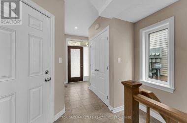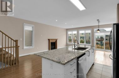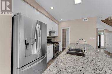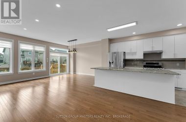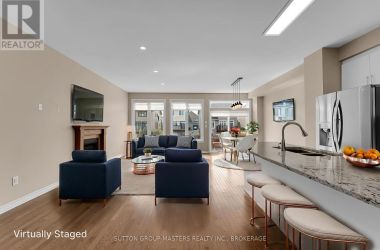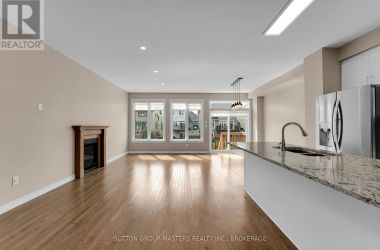 This Stunning, End-Unit Townhome in Woodhaven is the perfect family home. Built by Tamarack Homes, this Cambridge model features around 2150sqft of finished living space and showcases modern elegance and functional design. As you enter, you will appreciate the open-concept main floor that is filled with natural light and features hardwood flooring and a cozy gas fireplace. Not to mention a chef-inspired kitchen with granite countertops, a large pantry, stainless steel appliances (including a gas range), and tile flooring. Upstairs, you will find three spacious bedrooms, a full main bathroom and a convenient second-floor laundry room. You will fall in love with the large primary suite with walk-in closet and luxurious ensuite featuring a soaker tub and a separate shower. Hardwood continues throughout the upper level, enhancing the warm and upscale feel. The finished basement rec room is perfect for a TV room or playroom for young children. Step outside to a low-maintenance backyard featuring a deck and large stone patio, perfect for entertaining or enjoying quiet mornings with coffee overlooking the peaceful ravine. Don't miss your chance to own this exceptional home in a growing family-friendly neighbourhood close to schools, parks, shopping, and transit. (id:50836)