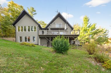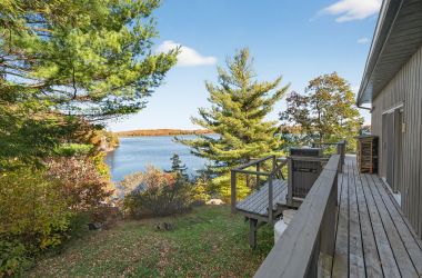 The ULTIMATE in country living for peace and tranquility. Get away from the stress of city life and relax. No need for a separate vacation property—this one has everything you want AND it’s only 30 minutes to downtown Kingston. Enjoy 40 acres of mature woodland with walking trails and wildlife habitat. At night, marvel at the stars in a sky free from light pollution. A gurgling stream and 70 ft waterfall overlook granite cliffs and South Lake. With 2,000 ft of deep waterfront and a dock, you can swim, canoe, fish, or simply unwind. Perennial and vegetable gardens offer near self-sufficiency, surrounded by privacy and a well-equipped home. A large garage and multiple sheds provide ample storage. Inside, the open-concept home features 3 bedrooms, 2.5 baths, and flexible living space. The kitchen boasts elegant cabinetry, stainless steel appliances, and generous counters. Living and dining areas flow to a deck with lake views, islands, and passing boats. A new wood stove adds winter warmth. The family room and 3-piece bath convert into a guest suite. Upstairs, two bright bedrooms include lake views and built-ins. The 4-piece bath offers a corner tub and heated floors. A newly added lower level serves as a rec room or bedroom with walk-in closets and a separate exit. Outside, enjoy a detached garage, storage and machinery sheds, gardens, and an outdoor shower. Bonus: a 10KW solar panel system generates approx. $9,500/year in revenue until 2030.