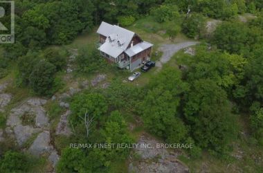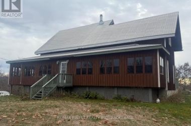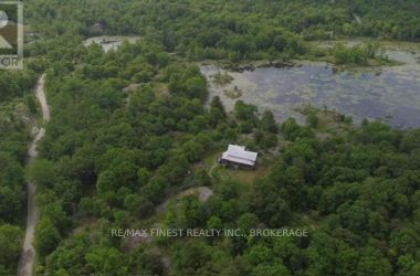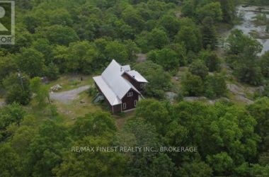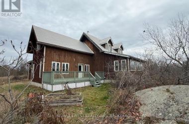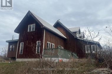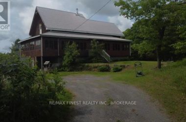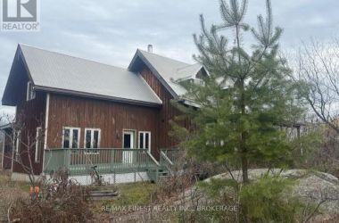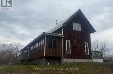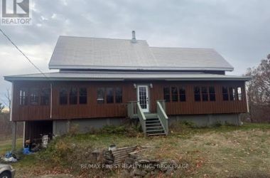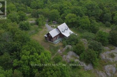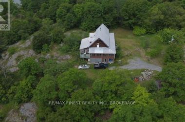 The house on the hill on 15 acres of scenic woods, trees, granite outcroppings, garden areas and a tranquil pond. The south facing views from the large sunroom make it all worth while sipping your morning coffee all year round. The new stylish four piece main floor bathroom is superb. The open concept kitchen leads to the sunroom or to the large main floor family room with hardwood floors. Upstairs the 3 bedrooms and office area are all good sizes and the master has a 2 piece ensuite. There is plenty of room to add another four piece bathroom too if required. A metal roof and a newer oil tank, furnace and hot water tank as well as an updated 200 amp panel box make living easy. Entrance can be from the lower level or the front door with a two sided covered wrap around porch large enough for a party itself. The lower unfinished basement is high and dry and provides a great area for future expansion and there is also a roughed in area for another bathroom here. The board and batten siding is real wood and the home is wrapped in insulation under the siding which makes heating costs reasonable. With over 2000 sf of living area, this home is a solid investment. Updates include new 200 amp panel box, oil tank 2021, solid wood eating bar in kitchen, and this combined with the metal roof, and high dry walk out basement, makes this a solid home for any young family to begin a new life in the country. Sitting on the hill provides privacy and panoramic views from the sunroom of the entire property. And all that road frontage makes severance possibilities an added value feature. Wakeup to the sounds of birds and wildlife. Home comes with an excellent well and septic. Just 55 minutes to downtown Kingston, and not far from a large grocery store in Verona. If you like fishing you can possibly visit a different lake every day of the year in this land of lakes community. Enjoy the rural life for all its worth in this large family home that awaits a new owner. See it today. (id:50836)