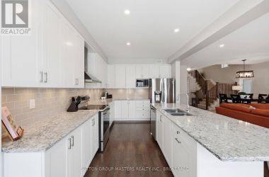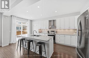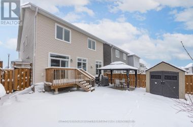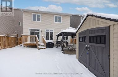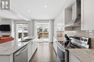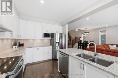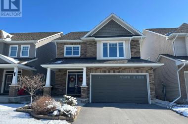 Welcome to this meticulously maintained 5-year-old Sable model by Tamarack Homes, nestled in the sought-after Riverview community on the east side of the Limestone City. From the serene covered front porch to the generous entryway, this home impresses with its desirable open-concept layout, abundant natural light, and soaring 9-foot ceilings. The chef-inspired kitchen is a true highlight, featuring an oversized island with stone countertops, upgraded cabinetry with soft-close drawers, and a timeless subway tile backsplash. The inviting living room is anchored by a custom gas fireplace and flows seamlessly into the adjacent formal dining area - perfect for both everyday living and entertaining. Thoughtfully designed, the main level also offers a spacious mudroom with inside access to the attached double-car garage, along with a dedicated office tucked just beyond, complete with charming windows. Upstairs, the expansive primary suite boasts a walk-in closet and a stunning 5-piece ensuite with a soaker tub and separate shower. Three additional well-appointed bedrooms and a conveniently located laundry room with sink complete this level. The lower level is ready for your personal touch, offering elevated ceilings, large windows, and a bathroom rough-in. Recently painted throughout, the home continues to impress outdoors with a fully landscaped and fenced backyard, featuring a concrete patio and walkway-ideal for relaxing or entertaining. Perfectly situated with easy access to Hwy 401, CFB Kingston, schools, downtown, and a wide range of amenities, this exceptional home is ready to welcome its next owners. Come see it for yourself! (id:50836)