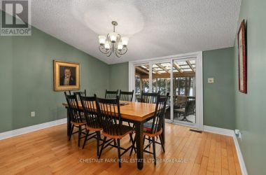 If you are seeking privacy and nature on a quiet lake with 1165 feet of shoreline, look no further. 1190 Alamo Lane is located on a private Peninsula on First Depot Lake. Enjoy boating, paddling, fishing and plunging into clear water off the dock. The layout with walkout lower level includes a bedroom and family room, perfect for accommodating your guests. There is also potential for a second lower level bedroom. The main level has three bedrooms, a 2pc, 3pc ensuite and a 5pc main bath. Enjoy the comfort of the wood fireplace in the great room and convenient gas fireplace in the lower level rec room, both with views of the lake. The screened porch is sure to be your year round room to relax, entertain and take in views of the lake. This rare property has it all for those looking to be surrounded by nature, peacefulness and privacy. Be sure to view the floor plans, pictures and virtual tour. (id:50836)