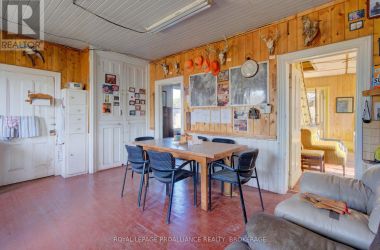 Large acreage in a prime location! This 152-acre property is located just 35 minutes north of Kingston and only 12 from the town of Verona. The property is currently being used as a hunt camp but could also be a great location for your family's next homestead. The property has many ideal features that the avid outdoors person is looking for and is truly a hunter's dream property with a mixture of hardwood bush, softwood groves, open fields, marsh and ponds. The beautiful and private pond is about 6 acres in size and is a perfect spot for hunting waterfowl or watching nature. There is a 15 - 20-acre open area located behind the old farmhouse that could be brought back to workable land if a hobby farm is in your future. The old farmhouse has been set up as a hunting camp with 6 bedrooms, a kitchen, a living room and has been a great refuge to get out of the weather and enjoy comradery. There is a building next to the house that is set up as a large sauna and there is an outhouse nearby. The house runs off a generator but hydro is available approximately 1 km away down the road. There is a well on the property that has not been used in many years but could be utilized again. This property sits in an area that has many lakes that have public boat ramps and access for boating, fishing, swimming, etc. The Rivendell Golf Course is close by along with the Piccadilly Arena as well as places to shop for supplies or get a bite to eat. There are trails throughout the property where you can enjoy peace and relaxation while surrounded by the sounds of nature. Fantastic opportunity! (id:50836)