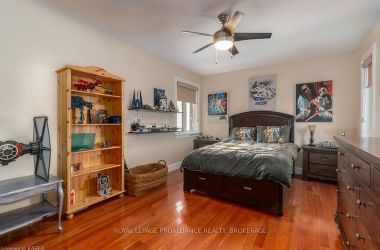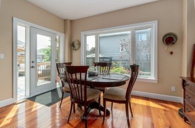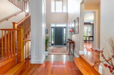 Modern Luxury on a Corner Lot in Cataraqui North. Bright, spacious, and beautifully finished, this 4+2 bedroom home offers refined living on a generous corner lot with a sunny south-facing backyard. The grand two-storey foyer features shaker-style columns and a striking cantilevered staircase leading to an open balcony landing. The main floors open-concept layout showcases cherry-wood floors, granite counters, transom windows, and custom built-ins. A large prep island anchors the cherry kitchen, complete with slow-close cabinetry and a walk-in pantry. Oversized windows flood the space with natural light, continuing upstairs into four spacious bedrooms. The primary suite includes patio doors to a Juliet balcony and a stylish ensuite with a tiled walk-in shower and stone-topped vanity. The luxurious family bath features a roll-top clawfoot tub and separate shower. A second-floor laundry adds everyday convenience. The finished basement with 9-foot ceilings offers two additional bedrooms, a second kitchen, second laundry, and a large rec room, ideal for in-laws or teens. Outside, enjoy a covered gazebo patio, landscaped flower beds, and a deck with hot tub connections under a lean-to shelter. The property is equipped with hot tub and generator hookups, offering added comfort and peace of mind year-round. This home blends elegance and functionality perfect for families, entertainers, or multi-generational living.