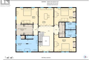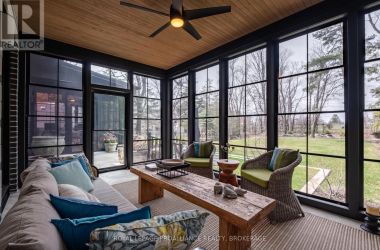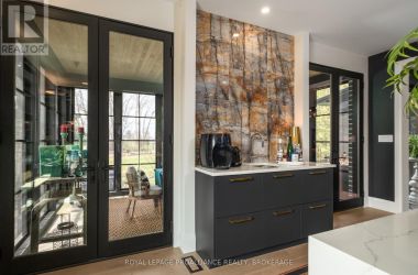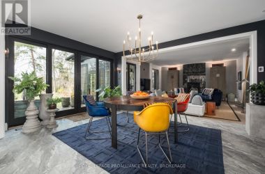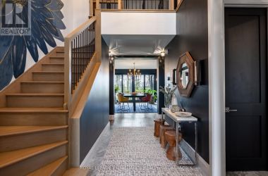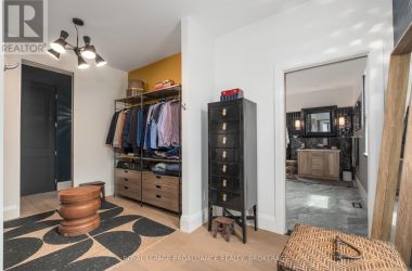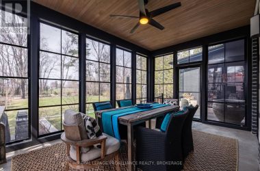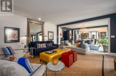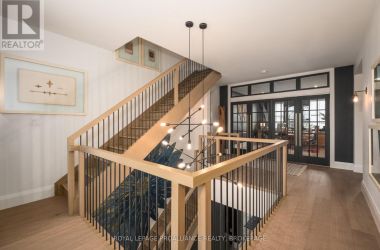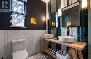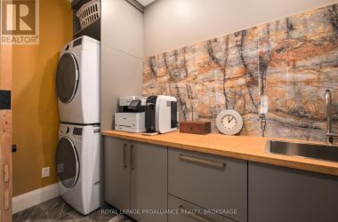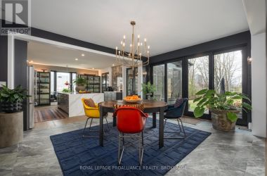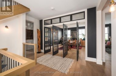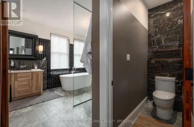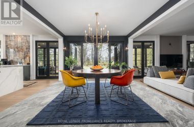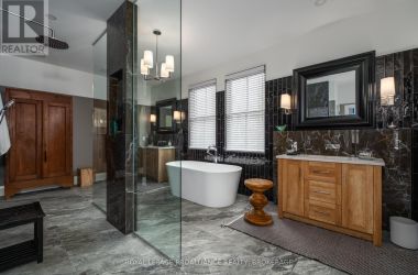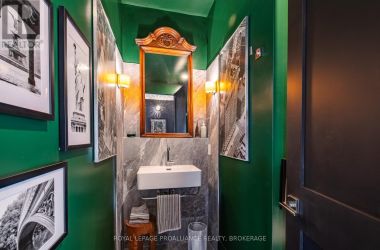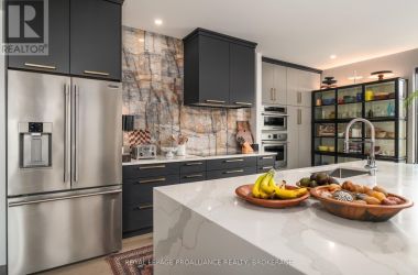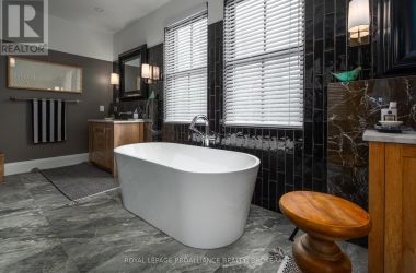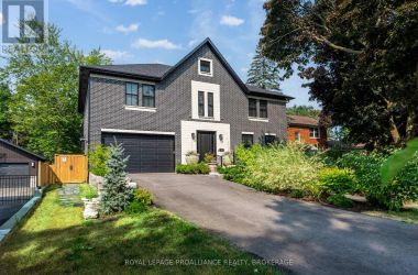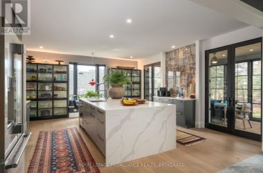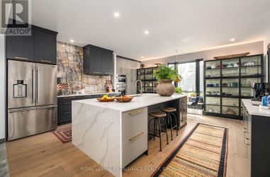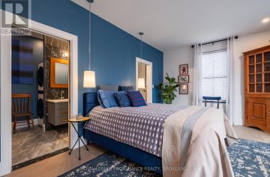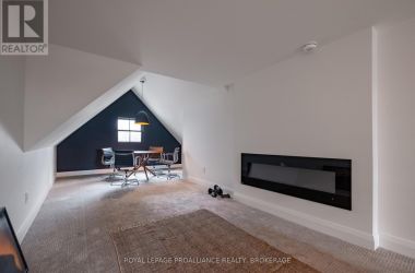 Exquisite and classic new home in an unbeatable downtown location. Built in 2023, this professionally designed 2.5-storey brick home offers over 4,000 sq. ft. of contemporary living space on an exceptionally large and beautifully landscaped lot in one of Kingston's most sought-after neighbourhoods - Earls Court. Backing onto Oakridge Park with no rear neighbours, its a true retreat in the heart of downtown. Every design element has been thoughtfully curated, from the intricate tile work to the antique doors throughout the house which add timeless charm. The chefs kitchen boasts quartzite countertops, a double-wide waterfall island, induction cooktop, built-in oven, convection microwave, bar fridge, wet bar, and bay window with built-in breakfast seat. The open-concept kitchen-dining-living is the heart of the house, and all face west and overlook the verdant backyard. Hardwood floors run throughout the house while in-floor heating provides added comfort in the dining area, main floor bath, and primary ensuite. A pair of three-season porches open onto a terraced patio and expansive lawns surrounded by perimeter gardens. A versatile front room, currently an in-law suite with laundry and a four-piece bath, could also serve as an office or additional living space. The gorgeous hardwood stairwell opens to the second floor and winds past a stunning mural designed with the homes colour palette. Upstairs is the primary suite, two additional spacious bedrooms, each with its own private ensuite, a laundry room, and a large study with pivoting French doors. The spacious primary suite wraps around the south end of the house with seven windows and includes a walk-through closet and an ensuite with a freestanding tub, walk-through shower, dual vanities, and heated floors. The third floor is a finished vaulted bonus space, perfect for a kids' room, office, or studio. Additional features include a crawlspace for extra storage, a heated 2-car garage, and a large private driveway. (id:50836)