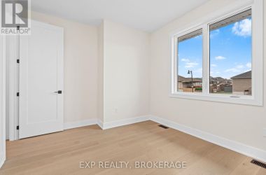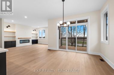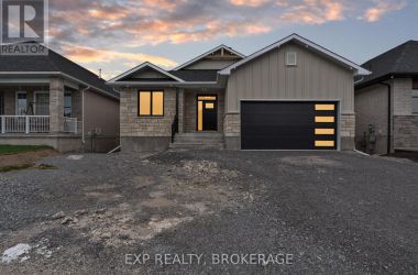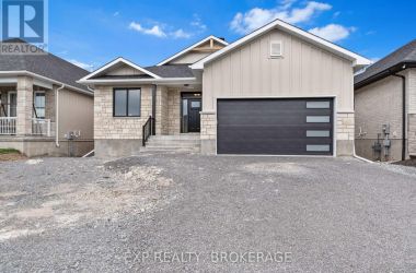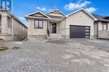 This incredible custom-built executive bungalow is located in the highly desirable Woodhaven area. This newly built home offers clean lines, lots of natural light, and an open floor plan. The serene outdoor space features a pond and backs onto a green belt. Luxurious finishes from the stone countertops to the crafted wood cabinetry greet you in the kitchen. The living room includes a gas fireplace, and the dining room leads to the covered back deck overlooking the pond. With 3 bedrooms and 2 full bathrooms, this home offers practical convenience for modern living. The primary bedroom features a 6 pc ensuite and walk-in closet. Both bathrooms have stone countertops and tile floors. Beautiful hardwood flooring flows throughout the rest of the home. This home also has central air, pot lights, built-in shelves, main-floor laundry, a full walk-out basement (wired, insulated, with high ceilings, and ready for final finishing), and a fully drywalled garage with a garage door opener. Book your private viewing of this impressive home today. (id:50836)