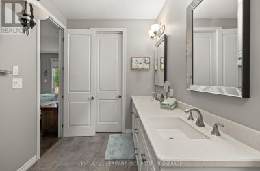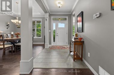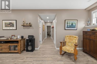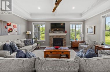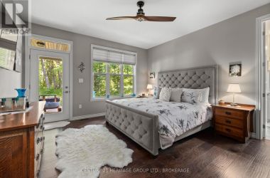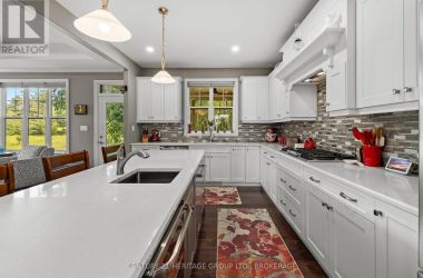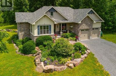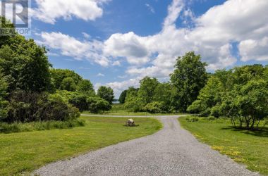 Welcome to this custom-built bungalow set on 4.52 private acres in the desirable Cranberry Cove Estates. With views of Cranberry Lake, your own pond, and a wooded backdrop, this home offers peace, privacy, and space to enjoy every season. The main level features 3 bedrooms, including a beautiful primary suite with walk-in closet and a 5-piece ensuite with soaker tub and glass shower. Tall ceilings, 8' doorways and large windows bring in natural light throughout. The great room and dining area are accented by 10 coffered ceilings, crown molding, wide-plank hickory hardwood, and a gas fireplace with stone surround. At the heart of the home, the chefs kitchen is both functional and high-end quartz countertops, shaker cabinets, tiled backsplash, and a massive 8' island with prep sink. Premium appliances include a 36 gas cooktop, double wall ovens, wine fridge, French-door refrigerator, micro drawer, and two dishwashers. Two car garage with entrance through the mud room. Downstairs, the fully finished basement nearly doubles your living space with 2 additional bedrooms, a full bathroom, a family room, games area, dry bar, home gym, and plenty of storage. Shouldice stone and board and batten exterior. Step outside and enjoy the surroundings: a covered front porch with lake views and rock gardens, and a large covered back deck overlooking your own pond and the forest. There's even a fire pit area perfect for relaxing to the sound of frogs at dusk. With over 3,400 sq. ft. of finished living space, custom finishes throughout, and only 35 minutes to Kingston, this is the rare rural retreat that truly has it all. (id:50836)