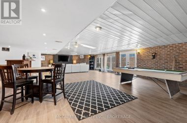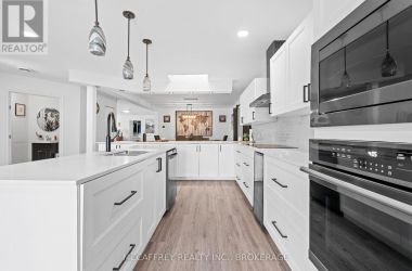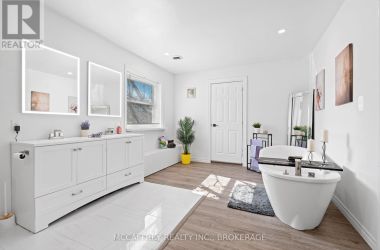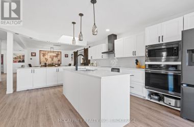 This beautifully updated 4-bedroom, 3-bathroom gem blends modern elegance with homey comfort in a serene neighborhood. Designed with luxury and functionality in mind, this 1.5-story residence is a true find. The spacious kitchen features exquisite quartz countertops and sleek black stainless-steel appliances. Enjoy slow-close drawers with hidden utensil compartments and a built-in garbage/recycling drawer, making it a chefs paradise. Luxury vinyl floors flow through the main living areas, complemented by all-new trim, while updated windows and doors, on the main level, provide abundant natural light. Entertain effortlessly in the large family room with a stylish bar area, perfect for gatherings. Two of the bedrooms boast plush new carpet, offering comfort and warmth. The primary bedroom is a retreat, featuring a lavish 5-piece ensuite with a deep soaker tub, dual waterfall shower heads with handheld attachment, and anti-fog backlit mirrors. Adjacent is a spacious his and hers walk-in closet with motion lighting. The additional 3-piece bathroom offers new flooring and a sleek shower stall for guests convenience. The backyard is a private haven designed for relaxation and entertainment. A beautiful brick privacy wall and pergola create the ideal setting for outdoor dining, while 15 newly planted cedar trees enhance the landscape, providing beauty and privacy.This property combines contemporary upgrades with timeless charm. Don't miss the chance to call this stunning house your home! Updates: Kitchen 2021-2025, Pergola 2022, New carpet in two bedrooms 2025, Main floor windows/doors 2021. (id:50836)