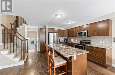 Welcome to this well looked after 10 year old townhouse offering 1,520 sq/ft, 3 large bedrooms,2.5 baths. Featuring a large sunken foyer and powder room with ceramic tile. Open concept design, bright living, kitchen and dining area. Gorgeous maple kitchen featuring large center island with extended breakfast bar, pots & pans drawers, tile backsplash and stainless steel appliances. The dining area includes patio doors to a deck and fully fenced rear yard. Upstairs offers 3 bedrooms including spacious master bedroom w/walk-in closet and 4-piece ensuite with ceramic tile flooring. Convenient 2nd floor laundry and 4-piece main bathroom with ceramic tile flooring. The basement is a blank slate complete with bathroom rough-in. All this plus paved driveway and cement walkway, landscaping, attached garage with opener and inside entry, HRV, central air and 6 appliances included! Ideally located in popular Woodhaven, close to all west end amenities. Don't miss this opportunity to own this woodhaven gem! (id:50836)