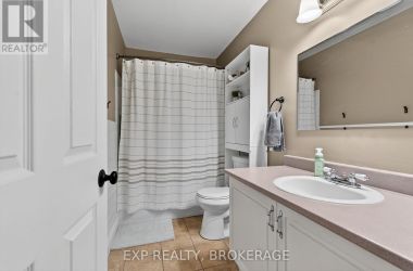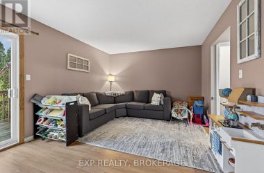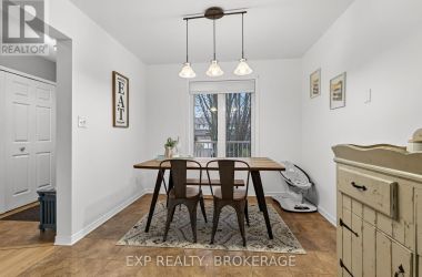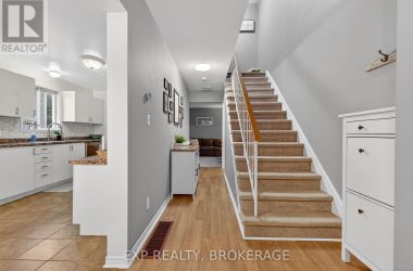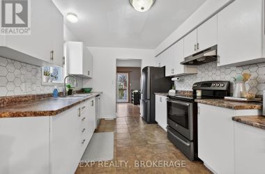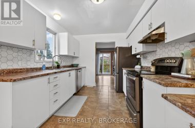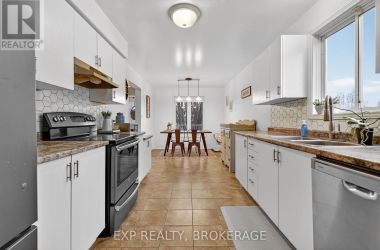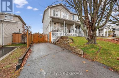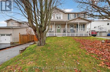 Charming 3-bedroom, 1.5-bathroom semi-detached home in Amherstview, fully finished from top to bottom with a bright walkout from the lower level to the landscaped rear yard. The open kitchen/dining area features ample cabinetry and includes five appliances, making this home truly move-in ready. The beautifully maintained backyard showcases extensive perennial gardens-an ideal space for relaxing or entertaining. Upon entering from the front porch, the foyer leads to the dinette area and the kitchen on the left. The family room is located at the back of the home and features a patio door that opens to the deck, with stairs leading down to the fenced yard. The upper level features a spacious primary bedroom with double closets, two additional bedrooms, and a full bathroom. The lower level includes a powder room, a laundry/utility area, and a walkout through a separate side entrance that leads to the driveway. Additional features include central air and a main roof updated in 2024. Conveniently located close to schools, shopping, a waterfront park, and Kingston's bustling west end, this home offers comfort, convenience, and a welcoming family-friendly setting. (id:50836)