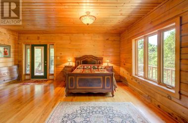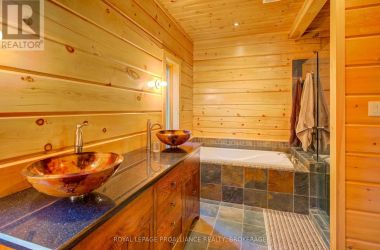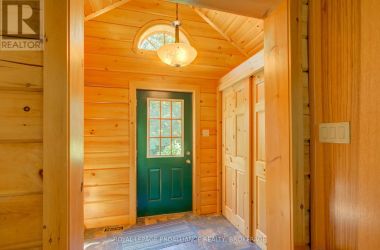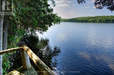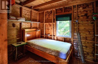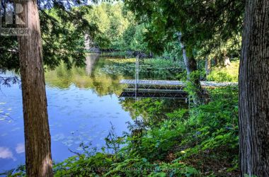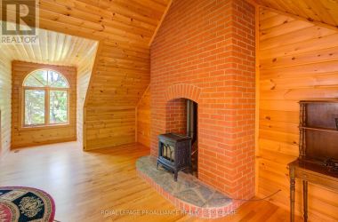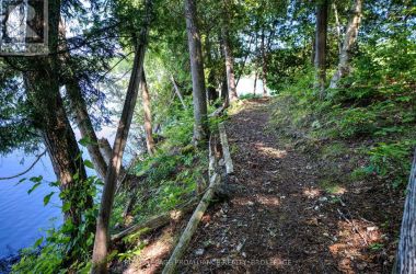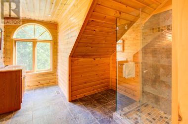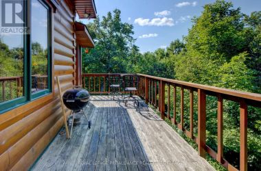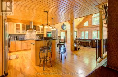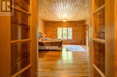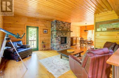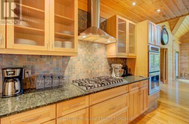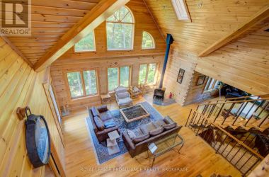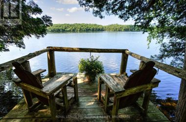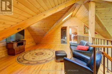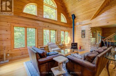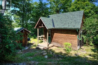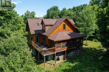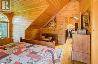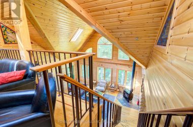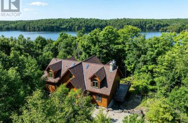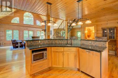 Hidden gem on Little Crosby Lake just north of Westport! This stately colonial concept log home sits immersed in trees on 6 acres of land with total privacy. Upon entering the home, you will find yourself in awe looking at the grand living room with beautiful windows and large custom hickory kitchen with a 6 burner Viking cooktop, double wall ovens, Miele dishwasher, granite counter tops and amazing locally sourced red oak flooring. This level has a family room with a granite boulder fireplace, an attached dining area, a 2pc powder room and a welcoming foyer. The primary bedroom has an attached 5pc ensuite with whirlpool tub and access to a large bronze-screened porch which is a wonderful place for your morning coffee. Walking up the custom oak and steel frame stairs to the second level, you will see a large loft area, two bedrooms and a 3pc bathroom. There is a Jotul propane stove in one of the bedrooms and all bedrooms have birch flooring. The walkout basement has 9' high ceilings, a workshop, craft room, undeveloped recreation room with a woodstove, cold room and laundry room. There are two doors that access the yard from this level. The house is serviced by a drilled well and septic system and includes a water softener, heat pump, 200 amp electrical service and two 40-gallon electric water heaters. Wandering down the path toward the lake, you will pass a 2-bedroom cedar bunkie with plenty of space for guests. Continuing along the path to the lake brings you to the dock area with a natural shoreline that is a perfect spot for your boat. Along the shoreline to the west is a lovely platform for sitting and enjoying deeper swimming waterfront. Looping back toward the house, there is a catwalk section on the path bringing you back home. There is a large garden shed behind the house - perfect for all your yard equipment. This stunning property is located just 10 minutes north of Westport with easy access to all amenities and unique dining and shopping options. (id:50836)
