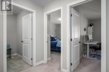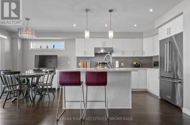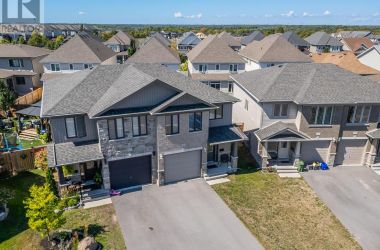 1425 Monarch Drive is a beautifully appointed semi-detached home in the sought-after community of Woodhaven. This custom Georgian Bay model by Braebury Homes offers an impressive 1,854 sq/ft above grade plus a fully finished basement, providing plenty of space for todays modern family. The main floor boasts an open-concept layout filled with natural light, highlighted by upgraded tile and rich engineered hardwood flooring. The chef-inspired kitchen features timeless white cabinetry, quartz countertops, stainless steel appliances, subway tile backsplash, a walk-in pantry, and an island with breakfast bar seating - perfect for casual meals or entertaining. Upstairs, you'll find three spacious bedrooms, including a massive primary suite complete with a walk-in closet and four-piece ensuite - a convenient second-floor laundry room and full main bathroom complete the upper level. The finished lower level offers a generous rec. room, ample storage, and a rough-in for a three-piece bathroom, giving you flexibility to customize the space to your needs. Step outside to enjoy a fully fenced backyard with a deck off the kitchen, ideal for summer barbecues or relaxing outdoors. This unique design also allows for an oversized 13 x 20 garage plus ample driveway parking. Located on a quiet street just steps to a brand-new school, nearby parks, and green spaces, with quick access to shopping, Highway 401, and public transit - this is an unbeatable combination of comfort and convenience. Don't miss your chance to call this stunning home yours. Book your viewing today! (id:50836)