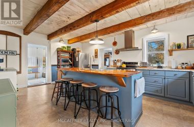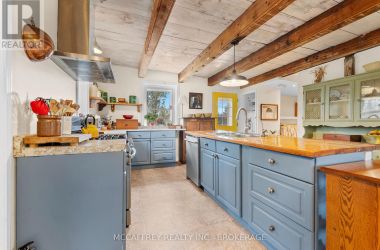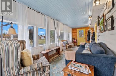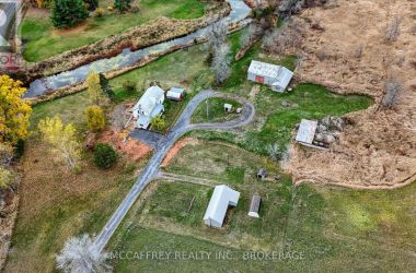 Creekside country retreat on just over 21 picturesque acres. Millhaven Creek meanders through the property, creating a serene backdrop, attracting wildlife, and offering a natural water feature at the heart of the land. A classic barn and multiple outbuildings provide flexible space for equipment, workshop, studio, or storage. There's ample room to plan gardens, meadows, trails, and outdoor living areas, all with the soothing sound of the creek nearby. The charming century two-story home blends rustic character with modern comfort. A welcoming front porch opens to an updated kitchen highlighted by warm wooden beams, and the adjoining dining, living, and sitting rooms provide generous space for family life and gatherings. A main-floor 3-piece bath and laundry add everyday convenience. Upstairs you'll find the inviting primary bedroom, three additional bedrooms, two more 3-piece baths, and a versatile flex space ideal for a walk-in closet, office, or playroom. Stay connected with Bell Fiber internet now available at the home-perfect for remote work, streaming, and smart-home needs. Despite the private, rural feel, you're just minutes from the village of Bath with its welcoming community and waterfront park. Whether you're envisioning expansive gardens, a workshop haven, or simply a tranquil country lifestyle beside a flowing stream, this property is ready to bring your vision to life. (id:50836)