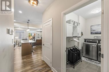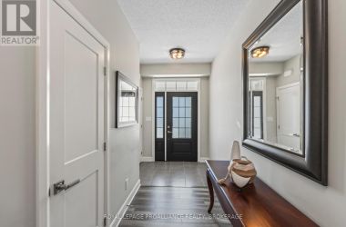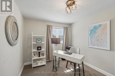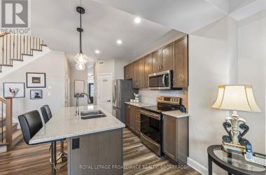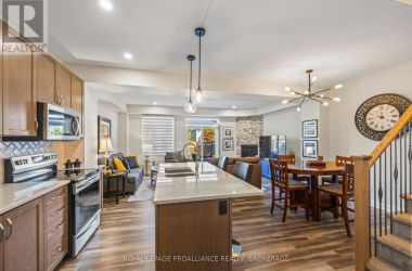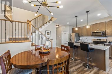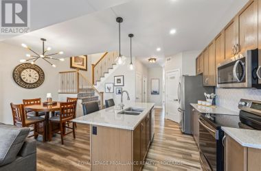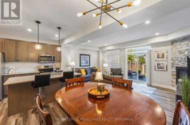 This CaraCo built Sunnyside model offers close to 1,600 square feet of above grade living space, modern lines, natural light, and an open concept layout! The main level begins with a tiled foyer, nine-foot ceilings, and a mudroom with laundry and inside access to the garage. From there, the flow turns open: living, dining, and kitchen, all connected by wide-plank flooring. The gas fireplace, now faced in stone from floor to ceiling, grounds the room with texture and warmth. In the kitchen, quartz surfaces meet clean cabinetry and a new backsplash that adds just enough colour and contrast. Most light fixtures have been upgraded and provide the home with the perfect glow from morning to night. Beyond the sliding doors, the fenced yard opens to green space-no rear neighbours, just a deck, a gas line ready for the grill, and a bit of calm at the edge of the city. Upstairs, three bedrooms and two full baths continue the same elegant tone. The primary suite offers a walk-in closet and a private ensuite with a five-foot tiled shower. The lower level waits for future plans, with a bathroom rough-in already in place. (id:50836)