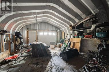 Sitting on 44 beautiful acres, this charming bungalow offers a perfect mix of comfort, space, and potential. The home features two bedrooms and two bathrooms, with a fully renovated kitchen and main floor bathroom that bring a fresh, modern feel. Large windows throughout fill the home with natural light and offer peaceful views of the surrounding property. The lower level renovation has been started but awaits your finishing touches. With a spacious rec room or family room centered around a cozy woodstove, a four-piece bathroom, and a convenient walk-out to the backyard make this space ideal for family gatherings. Whether you envision a hobby area, guest space, or entertainment zone, the possibilities are endless. A Quonset hut sits farther back on the property and includes a garage door, making it ideal for use as a workshop, garage, or additional storage. With plenty of room to roam and endless opportunities to enjoy country living, this property offers a peaceful retreat with room to grow. (id:50836)