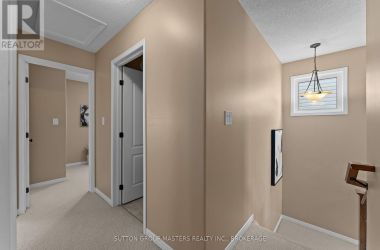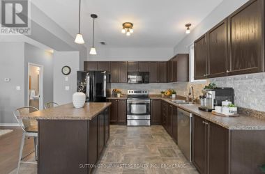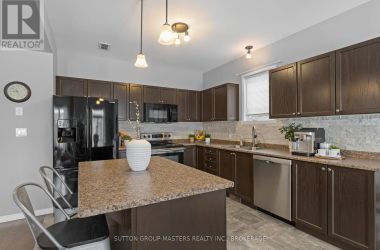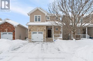 Welcome to this Caraco-built two-storey home in Kingston's sought-after Woodhaven neighbourhood, offering modern finishes, a smart layout, and room to grow. The main level features new flooring and an open-concept kitchen, living, and dining area highlighted by a cathedral ceiling and a large island - perfect for everyday living and entertaining. Step out from the living area to your rear deck, extending your living space outdoors. The home offers approximately 1445sqft of finished living space, with a convenient powder room on the main floor. Upstairs, you will find three bedrooms, laundry, a 4-piece main bathroom, and a 3-piece ensuite and walk-in closet off the primary bedroom. The lower level is fully framed and ready for your finishing touches, complete with a rough-in for an additional bathroom, offering excellent potential for added living space. Additional highlights include an owned tankless water heater and a single garage with inside entry. Ideally located close to shopping, schools, parks, and quick access to the 401, this home is a fantastic opportunity to settle into one of Kingston's fastest-growing west-end communities. (id:50836)