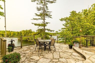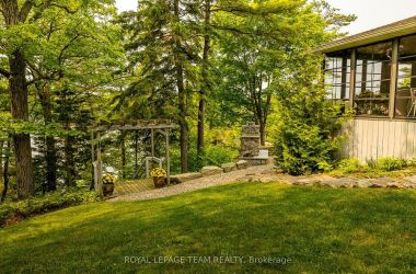 164A Deans Island Road offers a rare combination of expansive acreage, exceptional waterfront, and beautifully updated living spaces on the coveted Whitefish Lake-part of the Rideau Waterway. With approximately 500 ft of shoreline on the quiet channel leading into Morton Bay, this property delivers outstanding swimming, boating, and fishing, along with direct access to one of the region's most scenic stretches of the UNESCO designated Rideau system. Panoramic views of the lake and Rock Dunder create a breathtaking backdrop in every season. The main residence features vaulted ceilings and offers almost 3,000 sqft of well designed living space, featuring 4 bedrooms and 3.5 baths. The spacious primary suite offers the luxurious style ensuite you've been hoping for, with serene views and generous storage. A three season screened porch extends your living space outdoors, perfect for morning coffee or evening gatherings overlooking the water. A separate guest suite above the garage with approximately 1,000 sqft of living space features 1 bedroom and 1 full bath-ideal for extended family, visitors, or private workspace. The property includes both a 2 car attached garage and a second detached 2 car garage, plus a dedicated woodshed for year round convenience. Set on over 14 acres, the grounds are beautifully landscaped with stone features, rock gardens, and a charming herb garden. Outdoor living is enhanced by a striking stone fireplace, multiple seating areas, and natural pathways that lead toward the shoreline. Over the past decade, the owners have invested in a thoughtful series of upgrades that elevate both the home and the property-enhancing comfort, efficiency, and year round enjoyment while preserving the natural beauty and timeless character of this remarkable lakeside retreat.