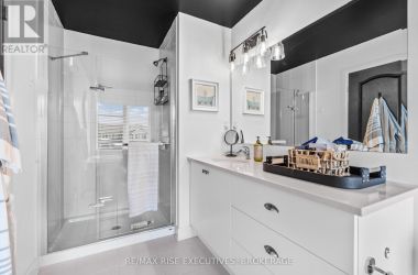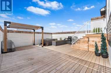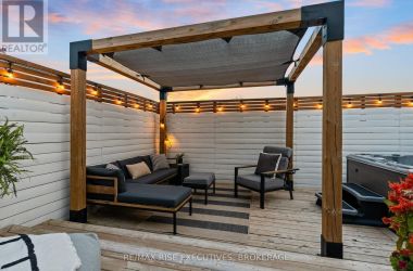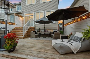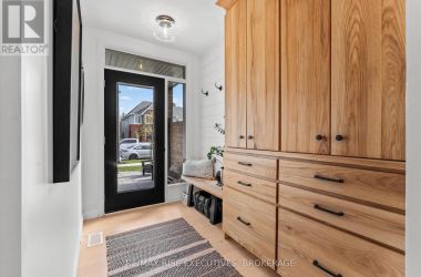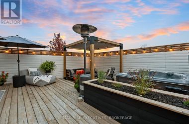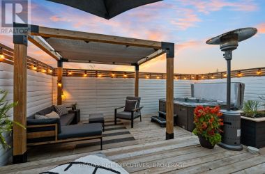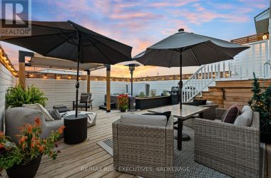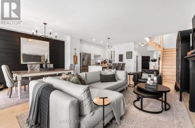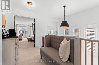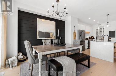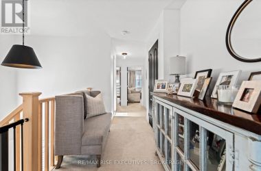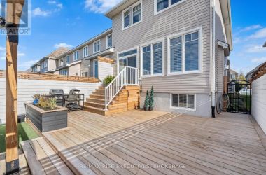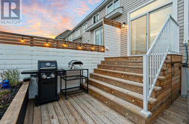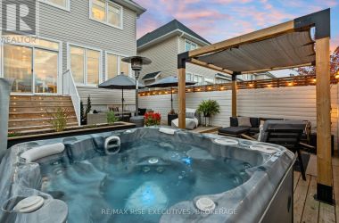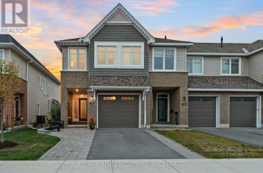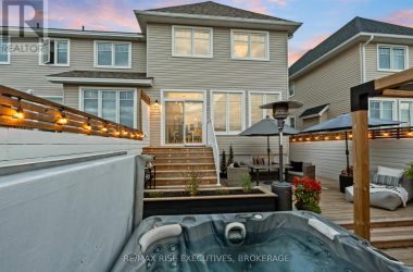 This premium Tamarack residence sits on a standout, fully landscaped lot with patio stone, a custom walkway, and manicured gardens that create an inviting entrance. The backyard is a private retreat with a relaxation hot tub, professional turf for low maintenance, illuminated steps, a raised flower garden, a full fence, and an expansive deck with zones for lounging, dining, entertaining, and storage. With the property backing onto St. Genevieve Catholic School and a new park and walking paths coming soon, this West-End location delivers long-term convenience and family-friendly appeal. Inside, the home showcases quality craftsmanship and a bright, open main level with Maple cabinetry, a custom coffee bar and pantry, quartz countertops, a waterfall island, professional stainless steel appliances, California shutters, and a warm gas fireplace. A beautifully crafted staircase, custom cabinetry, refined finishes, and a stylish powder room elevate the space. The lower level offers a cozy, flexible area for a movie lounge, music space, or children's playroom, plus a rough-in for a future fourth bathroom. Upstairs, the large primary suite features a king-sized layout, walk-in closet, and spa-style ensuite with a soaker tub. A well-designed upper-level laundry room includes quartz counters, a wash sink, cabinets, a folding station, and Electrolux appliances. Two additional bedrooms and a four-piece bath complete this level. With 2,200 sq. ft. of finished living space, upgraded lighting, an extended driveway, full eavestrough system, Celebright exterior lighting, and EV-ready wiring in the garage, this executive townhome blends upscale finishes with modern functionality. A must-see opportunity. (id:50836)