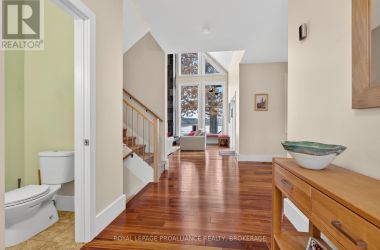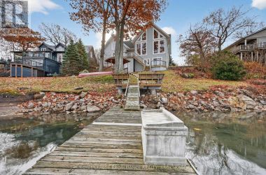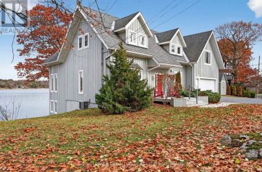 Welcome to 1682 Jackson Blvd., a stunning Viceroy-Style home that beautifully combines modern amenities with charming architectural details. This four bedroom residence features a durable wood-sided exterior, providing both aesthetic appeal and longevity. The home is heated by a hot water boiler system, complemented by a separate AC air handler for year-round comfort. As you approach the property you'll appreciate the inviting built-in flagstone walkway leading to the front porch, framed by picturesque rock formations. The double car attached garage and paved driveway with armour stones enhances the curb appeal while providing practicality. Step inside to discover a bright and spacious main floor, showcasing a beautiful kitchen equipped with a propane stove, dishwasher, refrigerator and a pantry for all your culinary needs. The living room boasts impressive two story high ceilings and a sleek black slate fireplace with a steel insulated chimney, creating a warm and inviting atmosphere. A flexible room adjacent to the living area can serve as an office or game room, adapting to your lifestyle. Upstairs, you'll find four generously sized bedrooms, offering ample space for family and guests. The second floor laundry adds convenience, with two bathrooms to ensure functionality for busy mornings. The walkout lower level is set up as an excellent studio space, flooded with natural light and featuring doors that open directly to the waterfront, providing spectacular views. Outside, enjoy the serene setting with two decks off the waterside of the house, a detached gazebo, and concrete stairs leading down to the water. The floating dock and sitting area create the perfect spot for relaxation and an ideal location for boating and fishing enthusiasts. With beautiful big windows facing the water and plenty of storage throughout, this home is a rare find that seamlessly blends comfort and beauty. Don't miss your chance to make this extraordinary property your own! (id:50836)