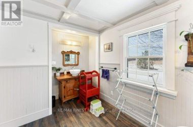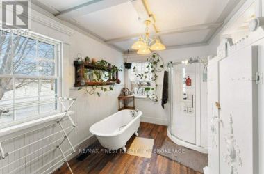 Nestled on a picturesque one acre lot just outside the charming village of Bath, Ontario, this exceptional 3 bedroom, 1.5 bathroom home is a blend of history, comfort, and modern updates. A true testament to craftsmanship, the home boasts original woodwork trim, lovingly milled from trees on the property, infusing warmth and character into every room. Inside, you will find updated flooring and perfectly selected wall colours that enhance the inviting ambiance. The finished basement provides additional living space, ideal for a family room or home office. Cozy evenings await by the stunning fieldstone chimney, a focal point of the living area. The exterior is just as impressive, featuring a durable steel roof and updated windows for energy efficiency. Enjoy the seasons on the expansive covered porch or entertain on the large deck overlooking the lush property. With new heat pumps providing efficient heating and cooling, comfort is guaranteed year round. Practicality meets charm with ample parking, a handy shed, and the peaceful setting just minutes from Lake Ontario. This home offers the perfect retreat while keeping you connected to the quaint amenities of Bath. Don't miss the opportunity to own a piece of this beautiful area! (id:50836)