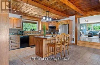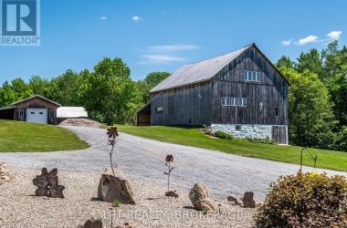 1758 Forty Foot Road, Godfrey, Ontario is a stunning countryside retreat that perfectly blends rustic charm with modern comfort, all set on an expansive 20.6-acre lot. This beautifully designed farmhouse offers 3 spacious bedrooms and 2.5 bathrooms, including a luxurious master suite featuring a spa-like two-person jacuzzi tub your own private oasis for relaxation.Step into the heart of the home, where the custom country kitchen, equipped with modern appliances, provides both function and charm. Whether you're preparing meals or simply enjoying the breathtaking views, this space is designed for comfort and inspiration. The open-concept living area boasts soaring vaulted ceilings and heated floors, creating a warm and inviting atmosphere year-round.Beyond the home itself, the property offers incredible versatility with multiple outbuildings, ideal for a hobby farm, workshop, or even a home-based business. With ample space to explore and enjoy, this property is a dream come true for those seeking privacy, tranquility, and the freedom to create their own rural paradise.Despite its peaceful and private setting, this home is conveniently located just 15 minutes from the nearest boat launch, perfect for enjoying the water. Additionally, outdoor enthusiasts will love the property's direct access to the K & P Trail, located less than a minute away, offering endless opportunities for hiking, biking, and adventure.Whether you're looking for a serene escape from city life or a place to embrace country living while staying connected to modern conveniences, 1758 Forty Foot Road offers a rare and exceptional opportunity to experience the best of both worlds. (id:50836)