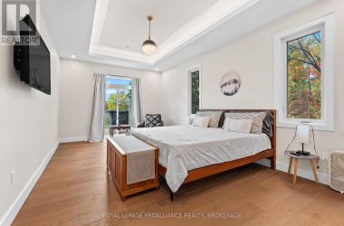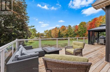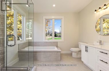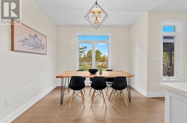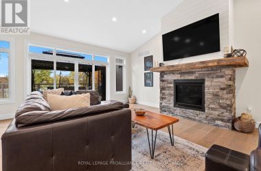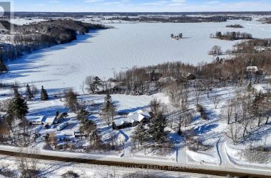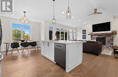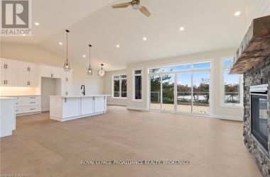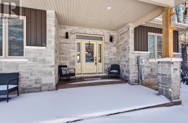 Discover lakeside living at its best with this stunning custom-built bungalow, offering over 2,000 sq. ft. of main floor living space and nearly 60' of shoreline on Dog Lake. Crafted with both quality and comfort in mind, this home features an ICF foundation, soaring 10' ceilings, a vast partially finished walk-out lower level, and engineered hardwood & tile flooring throughout. The open concept impresses, with the bright kitchen featuring quartz countertops, premium cabinetry and large separate dining area open to the spacious living room - highlighted by a gas fireplace and 12-foot patio doors leading to a 650 sq. ft. deck with glass and aluminum railings providing breathtaking panoramic views of the area. The primary suite is tucked away at one end of the home offering privacy, and finished with cove ceilings and a spa inspired 5-piece ensuite with glass-enclosed shower and soaker tub. Two other bedrooms and a full bath are also here on the main level. The walk-out lower level provides extra flex space and finds in-floor heating roughed-in, and the attached SIX-car garage with epoxy flooring is incredible. This one is a beauty - with wonderful curb appeal from the stamped concrete front porch all the way around the yard space right to the waterfront with a new floating dock. Packed with upgrades and with high end finishes throughout, this one should not be missed. Survey, floor plans and supporting documents are available upon request. (id:50836)