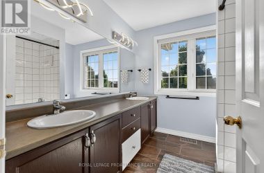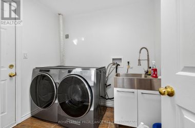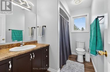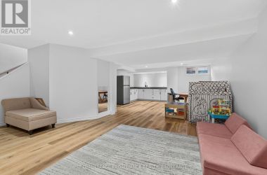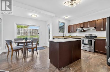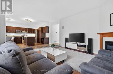 Welcome to your dream home! This beautiful and spacious contemporary residence is nestled on a quiet cul-de-sac, just a short walk from the lake, parks, and shopping. Perfectly designed for family living, this home offers a functional and stylish floor plan with modern upgrades throughout. Step inside to a bright and welcoming entrance with soaring 9-foot ceilings. The main level features a beautifully updated kitchen with an open-concept eat-in breakfast nook that flows seamlessly into the large living room, complete with a cozy gas fireplace. Patio doors lead out to a generous back deck - ideal for outdoor entertaining. A separate dining room (or optional family room), main-level laundry, and a convenient two-piece bathroom complete the main floor. Upstairs, the spacious primary bedroom boasts a luxurious four-piece ensuite. Two additional bedrooms share a well-appointed four-piece bathroom. New engineered hardwood flooring was installed throughout the upper level in May 2024, adding warmth and elegance. The fully finished, newly renovated lower level offers incredible versatility with a large recreation room, kitchenette, bedroom, brand-new bathroom, and ample storage - perfect for extended family, guests, or a private retreat. Enjoy the fully landscaped backyard with no rear neighbours, offering peace, privacy, and the perfect space for relaxation. Dont miss the opportunity to make this stunning home yours! (id:50836)