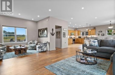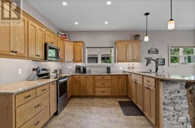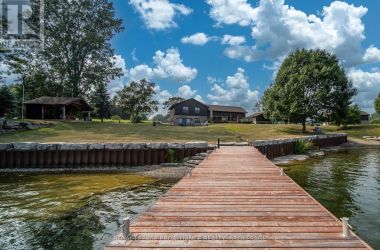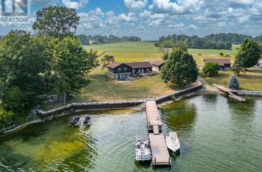 Rare opportunity to own 2 separate but adjoined waterfront properties, offering a combined 3.6 acres and 312 feet of clean, sheltered shoreline on the South/Eastern end of Wolfe Island in the heart of the Thousand Islands. Currently a perfect a perfect single family compound, two deeds allow the option of a guest house if desired. 199 Leone's Cove Lane is a fabulous turnkey, recently constructed, split level home. The main level's great layout offers open concept kitchen and dining. electric fireplace, and patio doors opening onto a spectacular river view deck. A walk through pantry and custom bar lead to a 3-piece bathroom. The upper level has three bedrooms and full bath, while the lower level has a rec room with walk out to patio doors, laundry/mechanical room and an additional bedroom. Outside, over 2 acres of landscaped and manicured grounds provide ample space to enjoy more than 220 feet of natural flat rock shore. The property boasts new steel and stone break walls and ample floating and fixed dockage, perfect for swimming, fishing, kayaking, and boating. A fantastic garage (22x19) with pine board and batten interior with pot lighting provides another cozy indoor space. There is a lovely outdoor pavilion built for parties and entertaining that overlooks ships navigating the St. Lawrence River to and from Lake Ontario.213 Leone's Cove Lane, the waterfront neighbouring property, has a 38x35 foot barn adorned from floor to ceiling with knotty pine, patio doors leading out to a stone landing, and quality lighting. All buildings for both properties have beautifully coordinated stone and siding. An additional 1.2 acres leads to 91 feet of clean shoreline, with your own boat launch and floating dock. Truly a once-in-a-lifetime opportunity. It's time to pack your bags, grab your friends and family and start making wonderful memories. Be one of the lucky few to know the joys of island life. (id:50836)