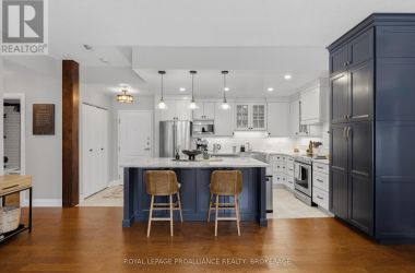 Welcome to this beautiful 2 bedroom, 2 bath condominium in the heart of downtown Kingston. Updated and sparing no detail with newer flooring throughout including hand-scraped hickory engineered hardwood through the living room, dining room area and both bedrooms. Kitchen with granite countertops, 4x7 island with double cabinetry, solid maple cabinets with soft close doors and drawers an 9 ft pantry with side out drawers. Includes stainless KitchenAid fridge, stove and dishwasher as well as Maytag full size front loading washer and steam dryer. The Leeuwarden offers downtown Kingston living close to a park and amenities. The building offers a guest suite, party room, library and exercise room. Condo fees include all utilities except cable and landline. Minutes from the downtown action, Queens, as well as KGH and HDH. This unit is guaranteed to wow! (id:50836)