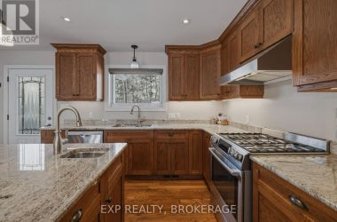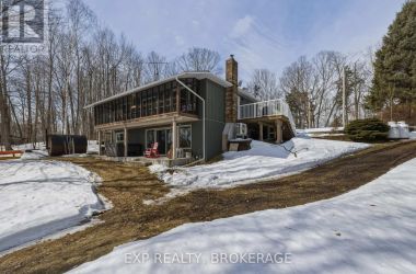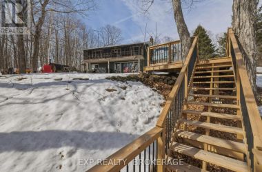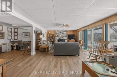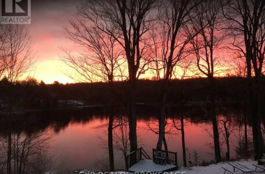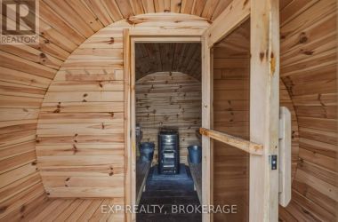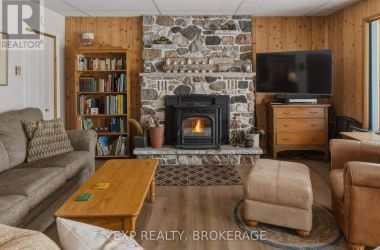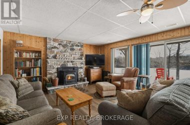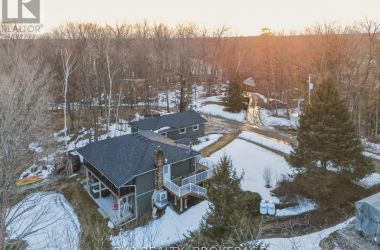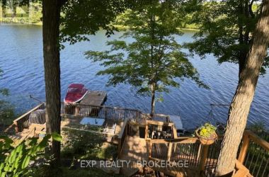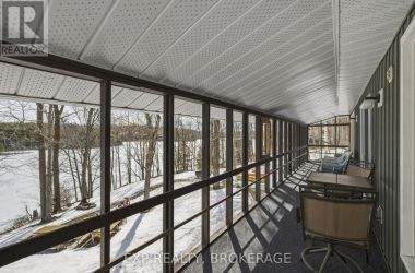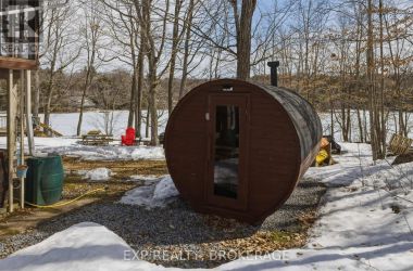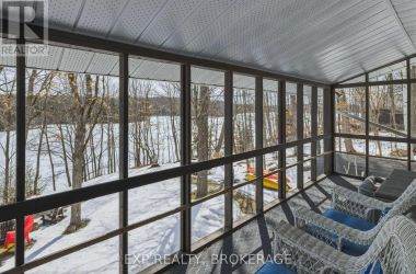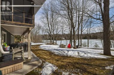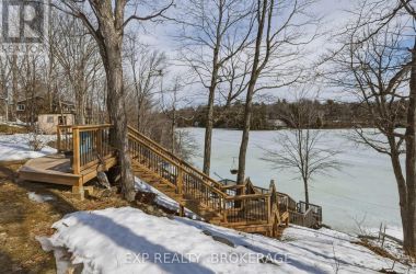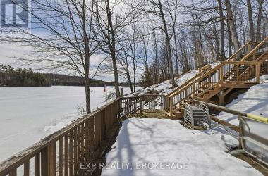 Nestled on a terraced 2/3-acre lot, this meticulously maintained 3-bedroom, 2-bath home combines thoughtful renovations with comfortable living - all just 25 minutes north of Hwy 401 on spectacular Hambly Lake. The bright, open main level is designed to take advantage of the waterfront setting. A full-length screened porch frames lake vistas and creates an ideal spot for morning coffee or anytime relaxation. The main floor was renovated in 2015 with upgraded insulation, custom cabinetry, granite countertops, hardwood and tile flooring, and a spa-inspired glass-enclosed wet room in the main bath. The primary suite on the main floor offers privacy and convenience, a walk-in closet and direct access to the main bathroom. A sliding pocket door can separate the suite, main bath, and laundry/mudroom from the main living area. The walk-out lower level is tailored for family life or entertaining. A cozy family room centred around a pellet stove creates a warm gathering area, while a home office area supports remote work. Two additional bedrooms share a Jack-and-Jill 4-piece bath, and a sunroom offers a second walk-out for versatile storage or seasonal use. Exterior and system improvements combine curb appeal with long-term reliability: new siding, gutters, wrap-around deck and front entry (2015-16); 25-year architectural shingles (2020); new garage doors (2023); improved lakeside stairs and landings; efficient heat pump supplemented by hot water heating coil from on-demand propane water heater (2025), and Celebright programmable exterior LED lighting (2025). See Documents Section for complete list of Features and Improvements. Hambly Lake is connected to Verona and Howes Lakes via Hardwood Creek, providing excellent summer recreation - swimming, boating, fishing and paddling - and classic winter activities such as skating, sledding and cross-country skiing. With sauna and hot tub, this lovely waterfront home blends comfort, style, and lakeside serenity. (id:50836)