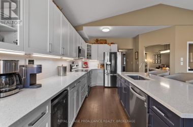 This exceptional two-storey residence offers the perfect balance of modern upgrades and timeless appeal. Built 19 years ago, the home has been meticulously maintained and thoughtfully updated, presenting as if it were brand new. Ideally situated in a mature neighborhood within a developing subdivision, it provides both established charm and convenient access to a wealth of amenities. Starbucks, Cineplex, and a wide variety of shopping and dining options are all within walking distance not to mention the new French school. The main floor features an open-concept design that seamlessly blends functionality and comfort. Highlights include an eat-in kitchen, a formal dining room, a spacious living room, and a welcoming family room enhanced by a gas fireplace. Expansive windows ensure an abundance of natural light throughout. On the upper level, three well-appointed bedrooms include a generous primary suite with a walk-in closet and a fully renovated ensuite. The spa-inspired ensuite showcases a tiled shower with glass doors, an elegant vanity, and ceramic flooring. The main bathroom has also been upgraded with ceramic tile and a modern vanity. The professionally finished lower level extends the living space with a recreation room, a four-piece bathroom, and a sizable fourth bedroom. Additional storage is available in both the basement and the double-car garage. Outdoors, a private backyard retreat offers a large deck and room to run, creating the perfect setting for relaxation or entertaining. Recent updates further enhance peace of mind: roof replacement (2020), kitchen renovation and new hardwood flooring (2021), and updated main floor tile (2025). This property presents a rare opportunity to acquire a move-in-ready home in a highly desirable location. (id:50836)
