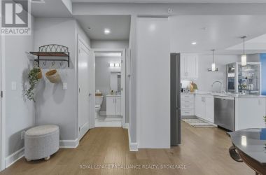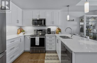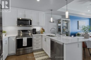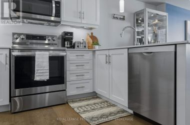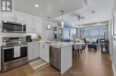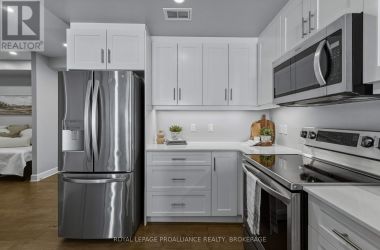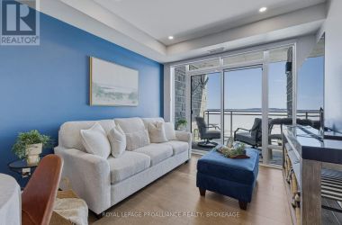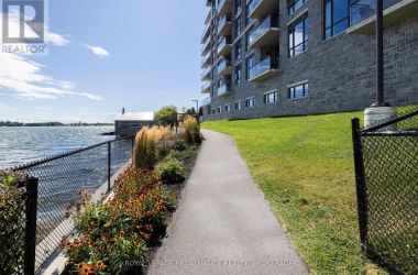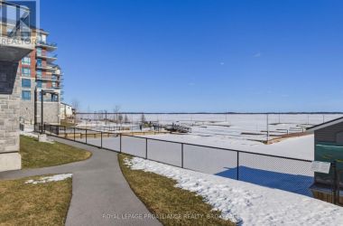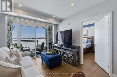 Welcome to carefree waterfront living Gananoque, nestled along the stunning St. Lawrence River. This beautifully appointed 1-bedroom plus den condo offers an exceptional lifestyle in a newer, upscale building just steps from the water.Designed with comfort and style in mind, the open-concept layout features an upgraded kitchen with quality finishes, seamlessly flowing into the bright living and dining areas. Engineered hardwood floors run throughout, creating a completely carpet-free space that is both elegant and easy to maintain. The spacious primary bedroom is complemented by a full ensuite bathroom, while a convenient powder room adds flexibility for guests. The den provides the perfect spot for a home office, reading nook, or overnight visitors.Residents enjoy outstanding amenities, including a waterfront park and scenic walking trail, a well-equipped gym, and a fantastic community party room complete with a pool table and full kitchen - ideal for entertaining. A communal BBQ area invites outdoor gatherings, and secured underground parking offers added convenience and peace of mind.All of this within walking distance to the waterfront, the renowned Thousand Islands Playhouse, as well as local restaurants and boutique shops.An exceptional opportunity to enjoy low-maintenance living in one of Eastern Ontario's most picturesque communities. Please note: property taxes are currently being reassessed and are expected to be reduced - contact the listing agent for further details. (id:50836)