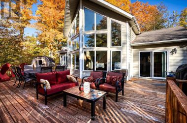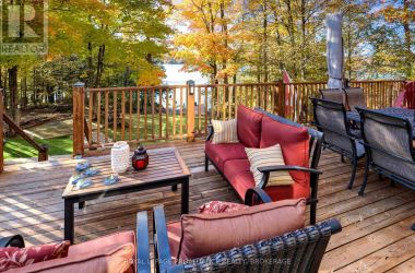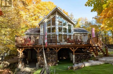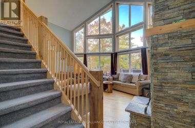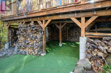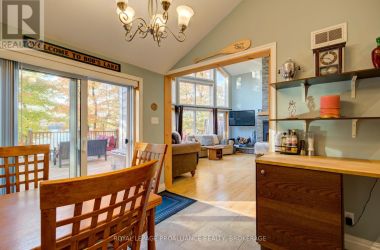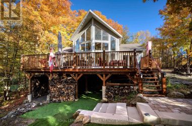 Beautiful and stunning 2 bedroom Viceroy home located on one of the most desirable lakes in our region. This home is located in Bayside Woods Cooperative, a lakeside property that has just under 5 acres of common land and 1100 feet of beautiful southwest facing shoreline. This home sits on an ICF poured concrete foundation and has access to the side yard through a double door that also allows for storage of yard equipment and perhaps some water toys. There is a finished recreation room with an electric fireplace, workshop and utility area. The main level of this home has an eat-in style kitchen, a laundry room, an inviting living room with cathedral ceilings, wood burning fireplace and floor to ceiling windows looking out over the lake. There are two bedrooms, 3pc. ensuite bathroom, another full 4pc. bathroom and stairs to the loft area. This area is currently set up as a sleeping area for extra family but could also be an amazing home office. The large cedar deck overlooks the land that has a slight slope down to the clear, inviting waters of Bobs Lake with a beach area that gradually gets into deeper water. There is a large storage shed and plenty of space for outdoor activities. The house is serviced by a septic system and drilled well and has fibre optic internet. The coop offers a convenient boat ramp and a storage building as well as a common dock. There are 14 owners of this cooperative property, who all take pride in their homes/cottages and the land that surrounds them. Bobs Lake is one of the largest lakes in our area stretching 19 kms long with many islands, bays and inlets to explore, fish and enjoy. Discover what this hidden gem has to offer and dive into cottage life on this stunning Canadian Shield setting. Annual fees (approx. $3522 for 2024) include common area hydro, docks, all maintenance and taxes. Hydro and road fees are in addition to these fees. (id:50836)