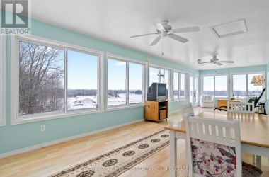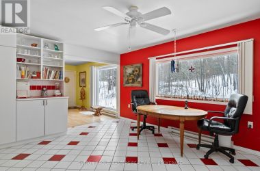 Exceptional custom-built raised bungalow offering rare versatility and refined living. Featuring nearly 2,400 sq ft on each level, all above grade, this one-of-a-kind home is thoughtfully designed to live, work, and create. The main level offers a double garage (24' x 12'), an expansive rear single garage (approx. 40' x 11'), and an impressive ~700 sq ft finished workshop with 15' ceilings, plus a private office, 2-piece bath, and separate entrance-ideal for a home-based business, studio, hobby space, or potential in-law setup (subject to zoning/municipal approvals).The upper level, accessed by stairs or elevator, showcases a stunning open-concept layout with a grand living room and woodstove, spacious kitchen, oversized bath, two generous bedrooms, and a spectacular three-season sunroom with breathtaking views. A truly unique property offering luxury, scale, and flexibility rarely found in today's market. https://drive.google.com/file/d/1BDJbD9Kl8-7RV0KtYpohZSqxktOOG5ZT/view (id:50836)