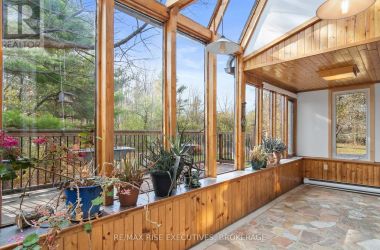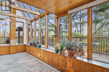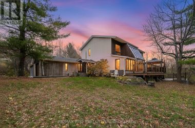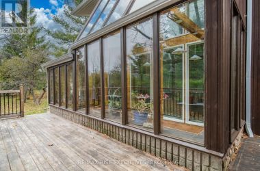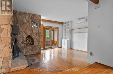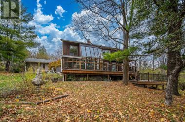 Sitting at the northern edge of Kingston, 2336 Battersea Road is a distinctive 3+1 bedroom, 3-bathroom home set on over an acre of landscaped grounds surrounded by trees. Built in 1982 with passive-solar principles, the home blends stone, wood, concrete, and glass into a timeless design inspired by Nordic and Baltic design principles-where form meets function and nature is part of the experience. At its heart is a striking sandstone fireplace inlaid with petrified wood, complementing the sunken living area and its cozy wood-burning stove. A towering, south-facing solarium floods the interior with light and opens to expansive decks overlooking the property. Modern comfort meets character, featuring an updated heat pump system providing efficient heating and cooling, newer shingles, and 200-amp electrical service. The insulated and heated garage, complete with polished concrete floors and its own heat pump, offers functional versatility-ideal for hobbyists or those who love to tinker. With hardwood floors throughout, a cedar sauna tucked away for relaxation, and a layout that balances creativity with practicality, this home will resonate with those who value thoughtful design, craftsmanship, and engineering detail. A one-of-a-kind retreat just minutes from Kingston - Schedule your private viewing today. (id:50836)