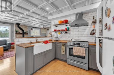 Forty-five scenic minutes from downtown Kingston, this smart, steel-roofed and re-sided four-season, four-bedroom cottage/home is perched nicely above the very pretty western end of Benson Lake. Part of the Rideau system, you're connected to Indian Lake and Clear, Mosquito and Newboro, and that's before you ever get to a lock. The boat launch is part of the property too, and if you pick a kayak you'll be gone a week. The kitchen - all subway tile and farmer's sink, stainless appliances - was completely re-worked five years ago, and the windows, flooring and furnace were replaced 10-12 years back. It feels properly updated, maintenance-free, then, the sort of place you'll visit (or stay at) in the winter, skates and snowshoes piled in the trunk. It's a proper two-storey (with an unfinished basement) so you can make a bit of noise, tell each other some jokes, while the kids are asleep. The Rideau Trail is a ten-minute walk back down the road so it's not all about the water, and several of your excellent neighbours are here twelve months. Westport is a scant fifteen minutes away, and the good Xplornet service (now Xplore!) means you can work up here too (if you really have to), or settle in around the woodstove for a movie. (id:50836)