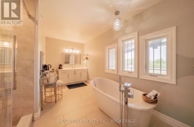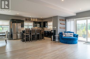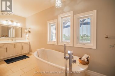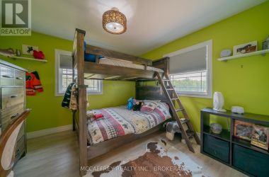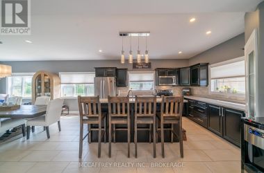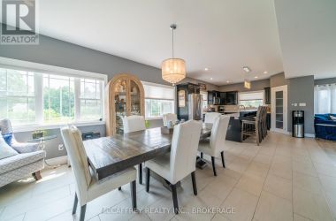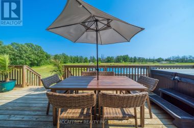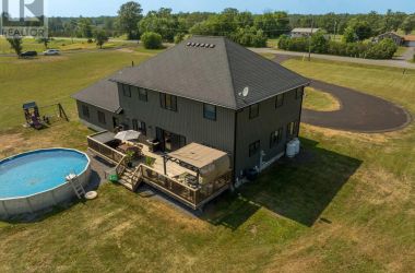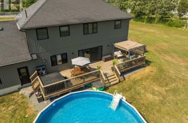 Welcome to your dream home, a breathtaking custom-built two-story residence that effortlessly combines luxury and comfort. As you approach the property, you'll be greeted by a circular driveway, and an attached two-car garage that adds convenience and ample space for parking. The grand entrance is truly a sight to behold, featuring large, elegant wood beams that exude a timeless charm and glandular appeal. Step inside and immerse yourself in a sun-drenched space where an open-concept design seamlessly unites style and functionality. The expansive kitchen is a chef's delight, complete with a large center island, generous pantry, and a dining area that invites lively gatherings and memorable moments. The spacious living room, bathed in natural light, offers the tranquility of a serene retreat. Open the patio doors to a welcoming deck, perfect for an afternoon unwind, and enjoy your private above-ground pool with picturesque views of the peaceful pond beyond. Completing the main level is a chic 2-piece bathroom, a versatile den or office space for those who work from home, and a convenient mudroom with direct access to the garage. Ascend the stunning wood staircase to the second floor, where every detail has been crafted with care. Discover three beautifully appointed bedrooms and a well-equipped laundry room with a sink for added ease. The primary bedroom is a true oasis, featuring a walk-in closet and a luxurious 4-piece ensuite that promises relaxation with its indulgent soaker tub and sleek glass shower. The lower level offers even more, leading you to a vibrant finished recreation room, a perfect canvas for family entertainment or personal retreat. This level also includes a fifth bedroom, a 4-piece bathroom, and a generous utility room with abundant storage. This spectacular home is your sanctuary, where every corner is designed to inspire and comfort. Embrace the elegance, the space, and the breathtaking views this is a property not to be missed! (id:50836)