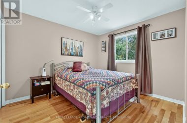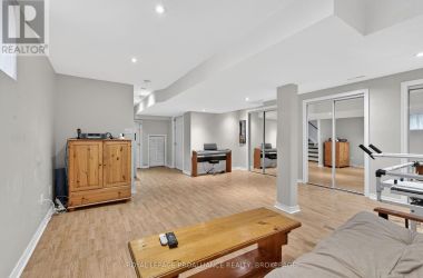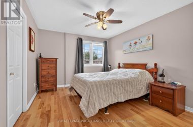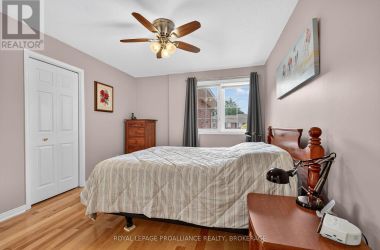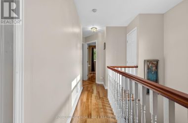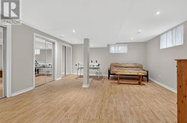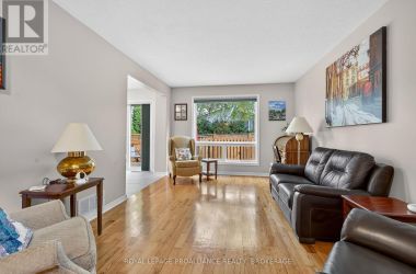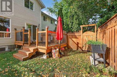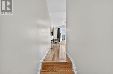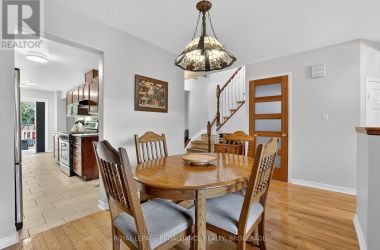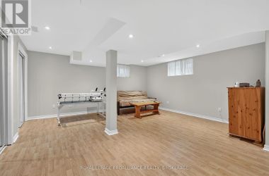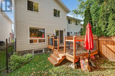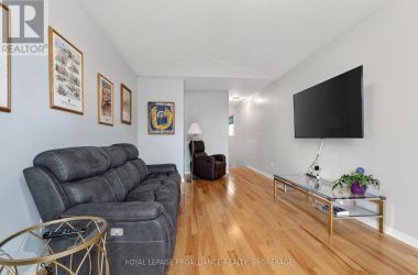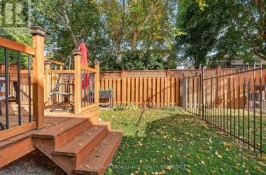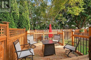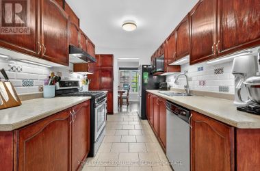 Spacious end-unit townhouse offering 1716 sq ft above grade plus a finished basement. The main floor features an open-concept layout, sunken entryway, updated 2-pc bath, formal dining room, large living room, and a bright family room with cathedral ceilings and oversized windows. The kitchen includes ample storage and a walkout to a private deck and fenced backyard. Upstairs offers 3 bedrooms, including a spacious primary with updated 3-pc ensuite, plus a rare second-floor family room - ideal for an office or playroom. Hardwood flooring throughout, updated baths, and a finished lower level. One of the largest units on the street. Close to schools, parks, shopping, and transit. Move-in ready! (id:50836)