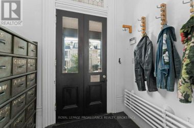Rare opportunity to take over a piece of history with this classic and delightful five-bedroom family home, in the heart of the coveted Sydenham Ward in downtown Kingston. This charming residence was meticulously designed by renowned architect Jonathan Power in 1878, and benefits from a remarkably large garden, difficult ever to find in this central location, just steps from Market Square, KGH and Queens .Enjoy the comforts of modern living with a recent full renovation (designed by the interior designer owner) which included a new kitchen, luxurious bathrooms, and an elegantly finished basement equipped with 8 high ceilings and ample natural light. The expansive rear garden is a true gem, featuring a stylish deck and a European-style gazebo(just built), providing an idyllic space for relaxation and entertainment. Plus a gas fire piton the terrace to enjoy on cooler evenings. This home harmoniously blends classic architecture(both inside and out) with contemporary amenities. Enjoy the original restored radiators for character, alongside modern air conditioning on the top three storeys and efficient radiant heat from a new gas-fired boiler. From the fully restored front porch and balcony crafted with cedar and ipe wood to the inline parking accommodating up to three vehicles with a carport, every detail has been considered. With five generously sized bedrooms and three baths, there is plenty of room for the entire family to live and thrive. This is a unique opportunity to own a stunning home that offers both historic charm and modern convenience in the heart of Sydenham Ward. (id:50836)