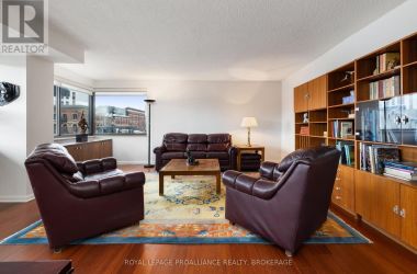 Welcome to the Landmark, one of downtown Kingston's most desirable waterfront condos with shopping and fine dining right at your door, and a short walk to Queens University, the hospitals and all downtown has to offer. This lovely 1 bedroom layout has an updated kitchen with white craftsman cabinets, quartz counters and stainless appliances. The bright living/dining room has full windows with a balcony overlooking the city. The modern 3pc bath features a walk-in tiled shower with glass doors and a bench seat, and the in suite laundry and a separate storage room adds convenience to the condo lifestyle. Enjoy all the building has to offer including the indoor pool and hot tub with atrium looking onto the outdoor patio, accessed by the exercise/games room, with a party room next door for building socials or book it for your own event. With an underground parking spot, a car washing station and a storage locker, and all utilities included in the monthly fees, makes this an attractive package. (id:50836)