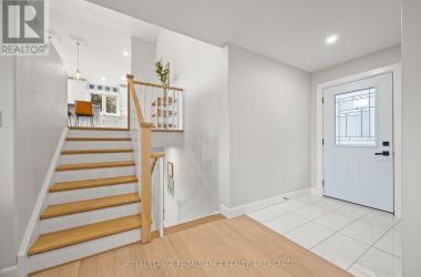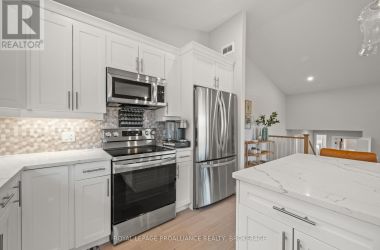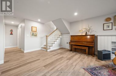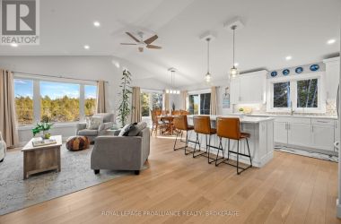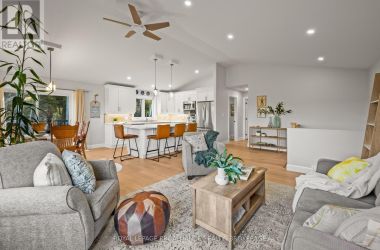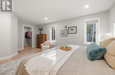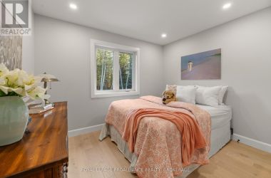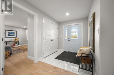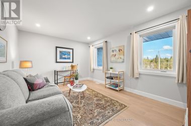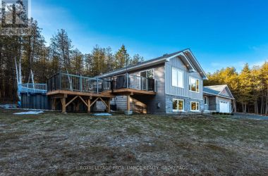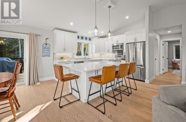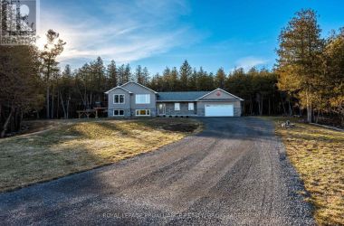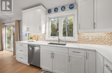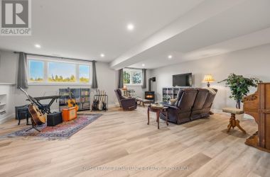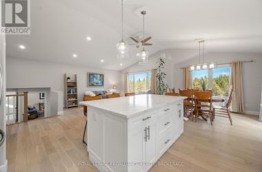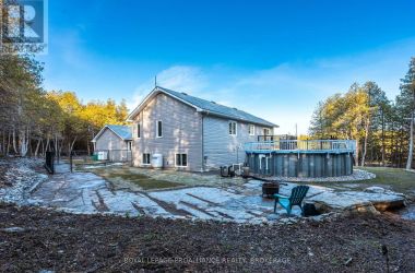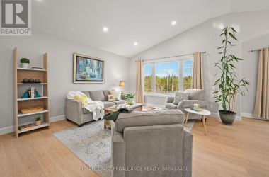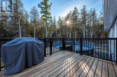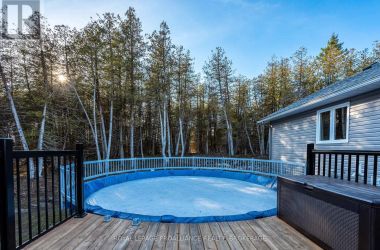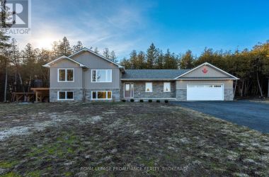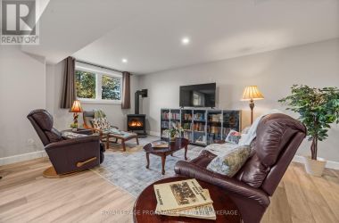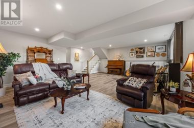 Set on a private, tree-lined lot, this well-executed newer side-split delivers a strong combination of functional design & usable space across every level. From the moment you arrive, the scale is evident with a wide driveway, oversized double car garage, & a setting framed by mature trees that carries throughout the property. Inside, the upper level is defined by its vaulted ceilings & open-concept layout, creating a bright, expansive feel across the living & dining areas. Large windows draw in natural light, while direct access to the elevated deck extends the living space outdoors. The kitchen is anchored by a substantial center island with seating, ample quartz counter space, & full-height cabinetry, positioned to overlook the main living area. The primary suite is both spacious & well-appointed, featuring a walk-in closet & a 3pc cheater ensuite. A second bedroom completes the upper level. The main level is thoughtfully laid out with a dedicated office, a full laundry room, & a 4pc bath, along with interior access to the double car garage creating a functional separation of space within the home. The basement extends the home with a substantial amount of additional living space, highlighted by a large rec room with a propane fireplace, along with two bedrooms, & multiple storage & utility areas. The scale of this level allows for a wide range of uses, from family living to guest accommodation. Outdoors, the property continues to deliver. The elevated deck overlooks a private backyard complete with an above-ground pool, a defined fire pit area, & open green space fully usable & framed by mature trees. A property that stands on its own defined by its scale, its setting, & a layout that delivers from the moment you walk in. (id:50836)