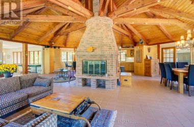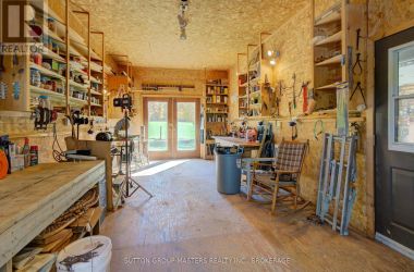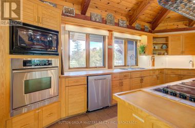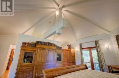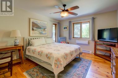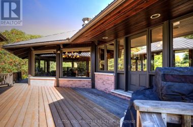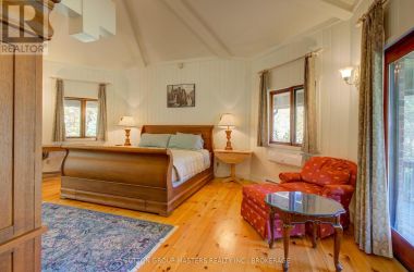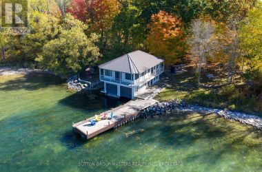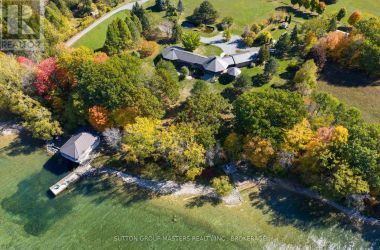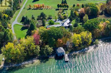 This stunning fusion of architectural brilliance and natural beauty will appeal to the discerning buyer who wishes to have a home like no other. No "cookie cutter" mass production here. Just design, craftsmanship and a whole lot of "Wow!" factor. The package is situated on about 6 acres, and it incorporates the home, the boathouse, outbuildings, and the 4-bay detached garage + workshop. It is a true unicorn. Built and designed with timeless materials in the "Mid-century Modern" aesthetic, this one-of-a-kind home makes a significant nod to the works of Frank Lloyd Wright, with its soaring great room focused on a double-sided fireplace that invites gatherings either grand or intimate depending on your mood. The 360-degree windows in the great room bring the private park like setting into your living space, allowing you to take full advantage of the selective plantings carefully arranged around the private and expansive grounds. The home celebrates its incredible natural setting by being designed of a piece with its environment. The cohesion between land and property create a truly tranquil experience. In addition to the home, the boathouse and waterfront area is an oasis of its own. Easily accessed via the driveway or a stroll down the lawns, it is safe for water adventurers young and old. No steps, no muss, no fuss, no bother. The boathouse features 2 slips with good water depth, and the larger slip has a boat lift. The boathouse also has a 2pc bath for convenience when spending long summer days down by the water. Above the wet slips is approximately 1000 square feet of finished space that feels as though you are in the captain's cabin on a ship. Water views out every window! The dock is concrete, and at around 14ft wide is a great spot for a few Adirondack chairs to take in the stunning sunsets that fill the bay. This amazing package is priced well below current build costs and represents tremendous value. It truly must be seen to be appreciated. (id:50836)