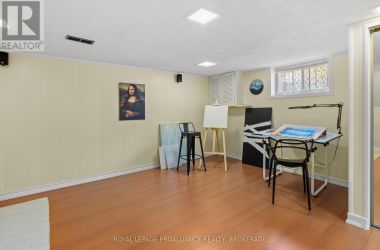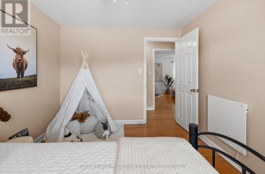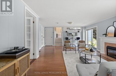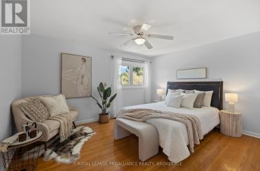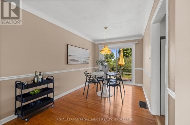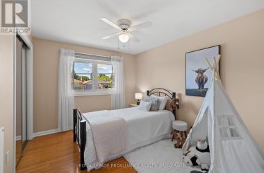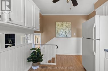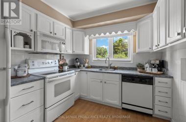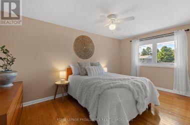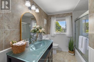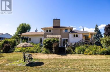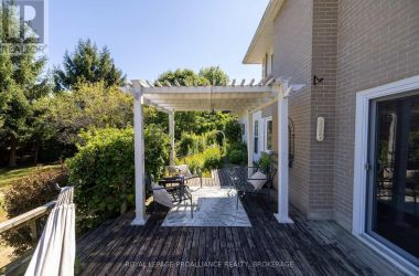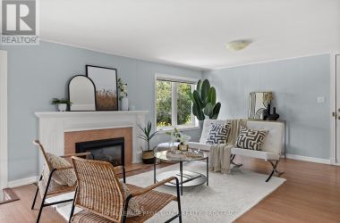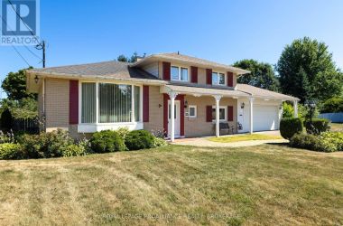 35 Manitou is a gracious 1962 side split planted on the big curve at the eastern end of the Crescent. The huge pie-shaped lot sprawls roadside like a sun-struck hound, and is studded with mature beech and lilac; the terraced gardens swarm with tiger lilies and roses. There is something ancient about the outdoor space, despite the well-tended lawns and flower beds. There is a fish pond, and even a little bridge over what used to be a seasonal stream until the municipality re-worked drainage in these parts a good thirty years ago. A pool would make sense and you'd still have room for some five-on-five soccer. The curb appeal is second-to-none. Inside, you've seen similar floor plans: The oak floored formal living and dining room wrap around the kitchen and it's down a few steps to the main floor family room with a gas fireplace, and the fourth bedroom (or office) with its two-piece ensuite. There are two sets of sliding doors out to the well-built decks. There are three bedrooms upstairs and a rec room in the basement, next to the laundry. The house is bright and spotless, and people have been dropping notes in the mailbox for decades: "If you ever sell .." they mostly begin and, well, that time has come. (id:50836)