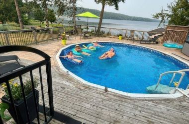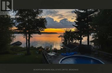 WATERFRONT, WESTPORT, WONDERFUL. - EFFORTLESS, ELLEGANT, UNFORGETABLEWelcome to lakeside living in the heart of Westport Village, where small-town charm meets the natural beauty of the Rideau Lakes. This inviting bungalow sits on 84 ft of waterfront on Upper Rideau Lake, offering an effortless blend of comfort, outdoor enjoyment, and four-season recreation.Step inside to a bright and functional main level featuring a living room with charming fireplace and walkout to expansive deck, a lively dining room with walkout to deck, a modern kitchen with pantry, and two comfortable bedrooms plus a full bath - ideal for everyday living or a waterfront getaway. The walkout lower level extends your living space beautifully, offering two additional bedrooms, a large rec room with 2nd fireplace, a full second bathroom, large laundry room, and storage - perfect for hosting family and friends.Outside is where this property truly shines. Spend summer days around the large above-ground pool, unwind on the expansive upper deck overlooking the water, or relax beneath in the covered patio area - a welcome shady retreat on warm days and a great entertaining space in rain or shine. Wander down to the shoreline where you'll enjoy mixed sandy waterfront, and endless opportunities for swimming, paddling, boating, and sunset lounging.With municipal water & sewer, an attached single garage, double paved driveway, and location just minutes to shops, restaurants, trails, and the marina, this is the perfect balance of convenience and cottage-country charm. (id:50836)