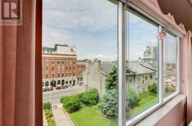 Welcome to easy downtown living! This 2-bedroom + den/office, 2-bathroom condo offers comfort and convenience with a full kitchen, in-suite laundry and storage, and a private locker downstairs. Soak in beautiful views of Ontario Street and City Hall right from your unit. With amazing building amenities and secure underground parking, this is your chance to live in one of Kingston's most desirable locations. (id:50836)