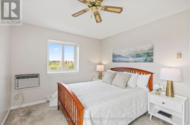 Welcome to this bright and spacious top floor, corner unit condo located in a central location in Kingston's west end. With over 1000 square feet and offering 2 bedrooms and 2 full bathrooms, this well-maintained home is filled with natural light and boasts great views with open vista to the north over green space and the Cat Mall. Take advantage of the best views in the building from the enclosed sunroom where you can relax year-round and take in stunning sunset views. The primary bedroom suite includes large closets and a private ensuite bath with a walk-in shower. This quiet concrete-constructed building ensures solid constructions and excellent sound insulation with no noise between units. This condo includes owned (covered) parking, a separate storage locker, and a functional layout ideal for both daily living and entertaining. With just 24 units, this building has a close-knit community and neighbours that look out for each other providing both added security and an active social scene. Enjoy unbeatable convenience right in the middle of the west-end, with shopping, restaurants, transit, and essential services all close by. Whether you're looking to downsize, invest, or step into homeownership, this wonderful property has it all! (id:50836)