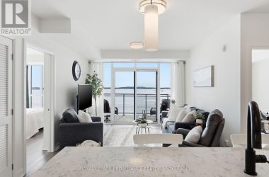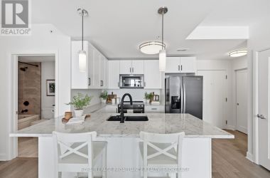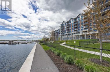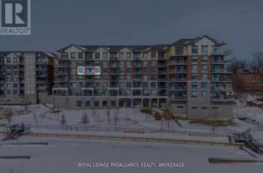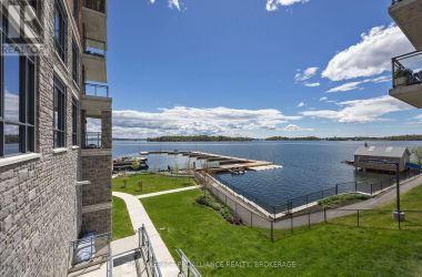 Ready to trade your snowblower for a carefree waterfront lifestyle? Imagine effortless living on the beautiful shores of the St. Lawrence River where stunning panoramic views & southern exposure fill your home with natural light all day! This lovely 2-bedroom, 2-bathroom condo offers an open, airy layout designed to maximize the majestic views over the beautiful Thousand Islands through gorgeous, oversized windows. Whether it's sparkling summer mornings or dramatic autumn sunsets, the backdrop is simply breathtaking. This nearly 1000 sq ft unit has a well-appointed kitchen featuring beautiful Quartz counters and quality appliances. Wake up each morning to beautiful river views from both the master and second bedroom. The lovely ensuite bathroom with large walk-in shower as well as the main 4pc bathroom, boast modern, luxurious tiles. For boating enthusiasts, this unit includes a private boat slip & dock, providing you with the freedom to easily enjoy tranquil days on the river. With in-suite laundry, central heating & cooling, a storage locker located just down the hall and one underground parking space, this unit offers a sweet & complete package. Stone & South has a great community feel and the building features a gorgeous party room for entertaining, a large fitness room, a lovely patio & community BBQ area and a fenced waterfront park with walking paths & dog walking area, I invite you to come and see it all for yourself! (id:50836)