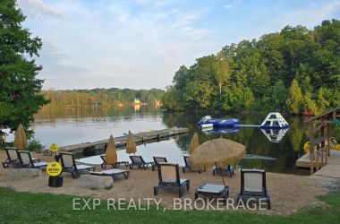 Exceptional 3.95-acre waterfront property on beautiful Dog Lake, part of the Rideau Canal System, renowned for excellent boating and exceptional year-round fishing. Offering approx. 750 feet of shoreline, half natural and half landscaped, this unique estate features a 40-foot sandy, gradual-entry beach and an impressive array of residential, recreational, and income-generating structures. Truly turnkey and ready for year-round enjoyment or business use. The property features three year-round vacation homes, three fully serviced RV sites, two seasonal trailers, a tuck shop, and extensive docking facilities. Outbuildings and amenities include 35x60 ft 4-bay garage; 10x16 ft seasonal tuck shop with patio; 70-foot dock, 30-foot dock, and two 16-foot docks; two16x16-foot floating gazebos; private boat launch; fish cleaning hut with water & electricity; gated entry (automatic openers included but not yet installed); advanced UNIFI Wi-Fi system throughout the property; security system; 3 septic systems with raised lids (all new in 2012); one drilled well & one dug well; and two 200-AMP electrical service panels. Located on a well-maintained municipal road with weekly garbage/recycling pickup. Fibre-optic internet scheduled for 2026 (currently using StarLink). Ideal uses include a turnkey year-round cottage rental business, a multi-generational family compound for seasonal or full-time living, long-term rental investment, and a huge 4-bay garage, a rare opportunity; all the hard work has been done. Schedule your private viewing today. (id:50836)